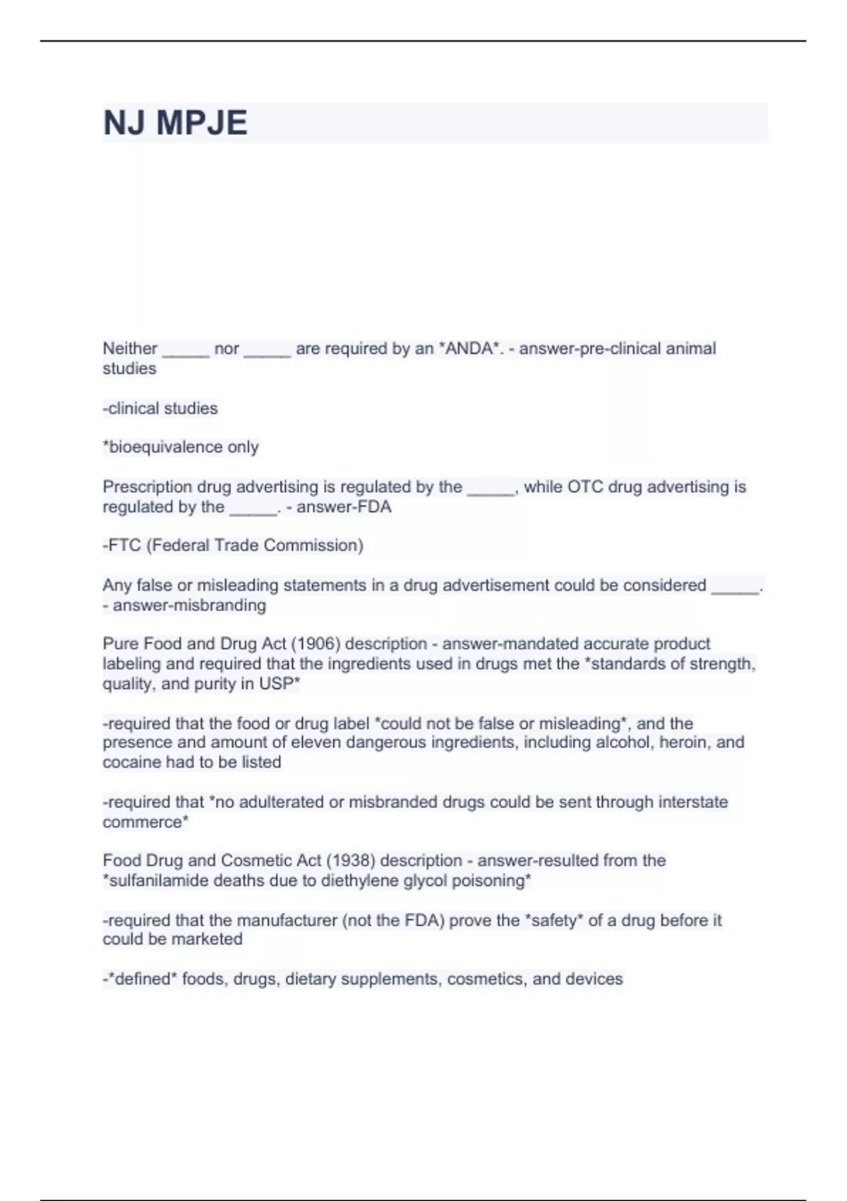 Exam of 68 pages for the course mpje at mpje (NJ MPJE Exam)