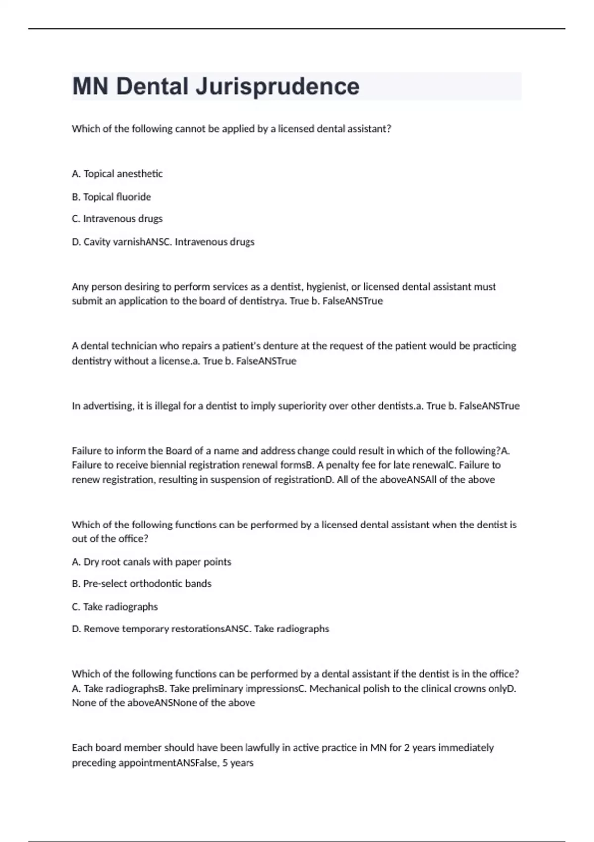 MN Dental Jurisprudence Exam Questions And Answers (RATED 100%)