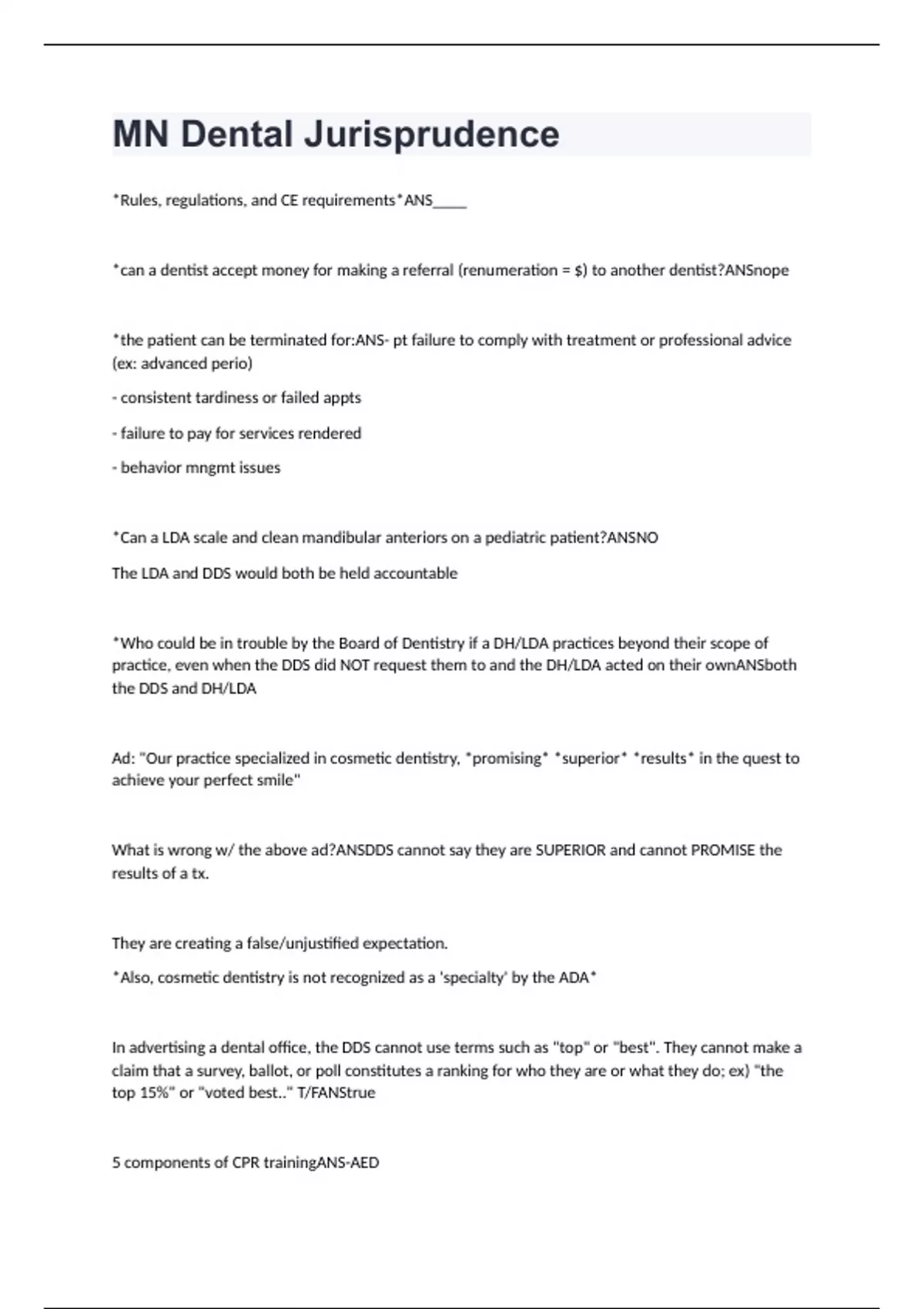 MN Dental Jurisprudence Exam Study Questions And Answers (VERIFIED ANSWERS )