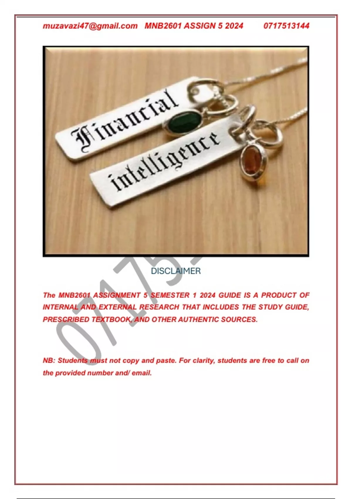 The MNB2601 ASSIGNMENT 5 SEMESTER 1 2024 GUIDE IS A PRODUCT OF