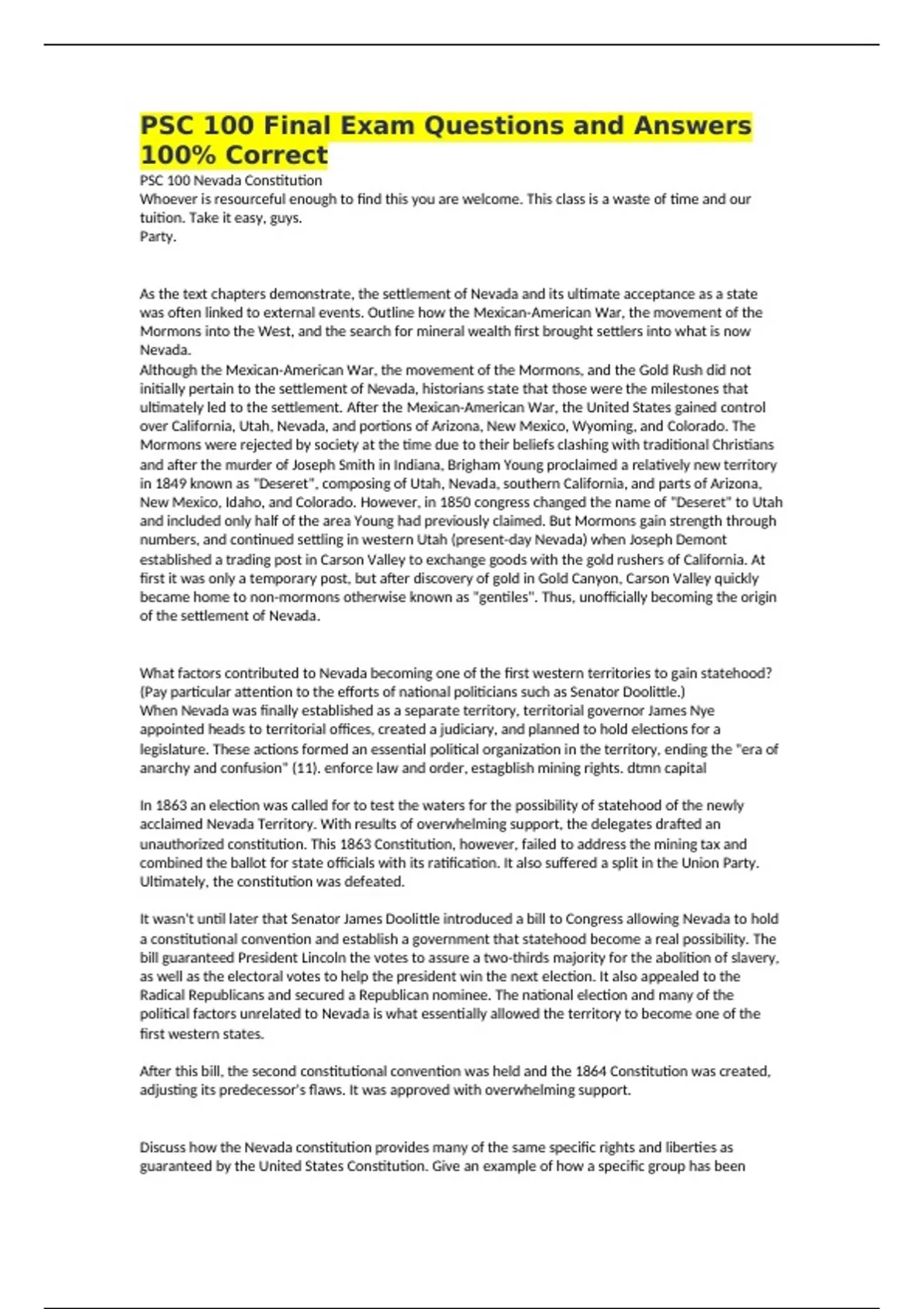 PSC 100 Nevada Constitution