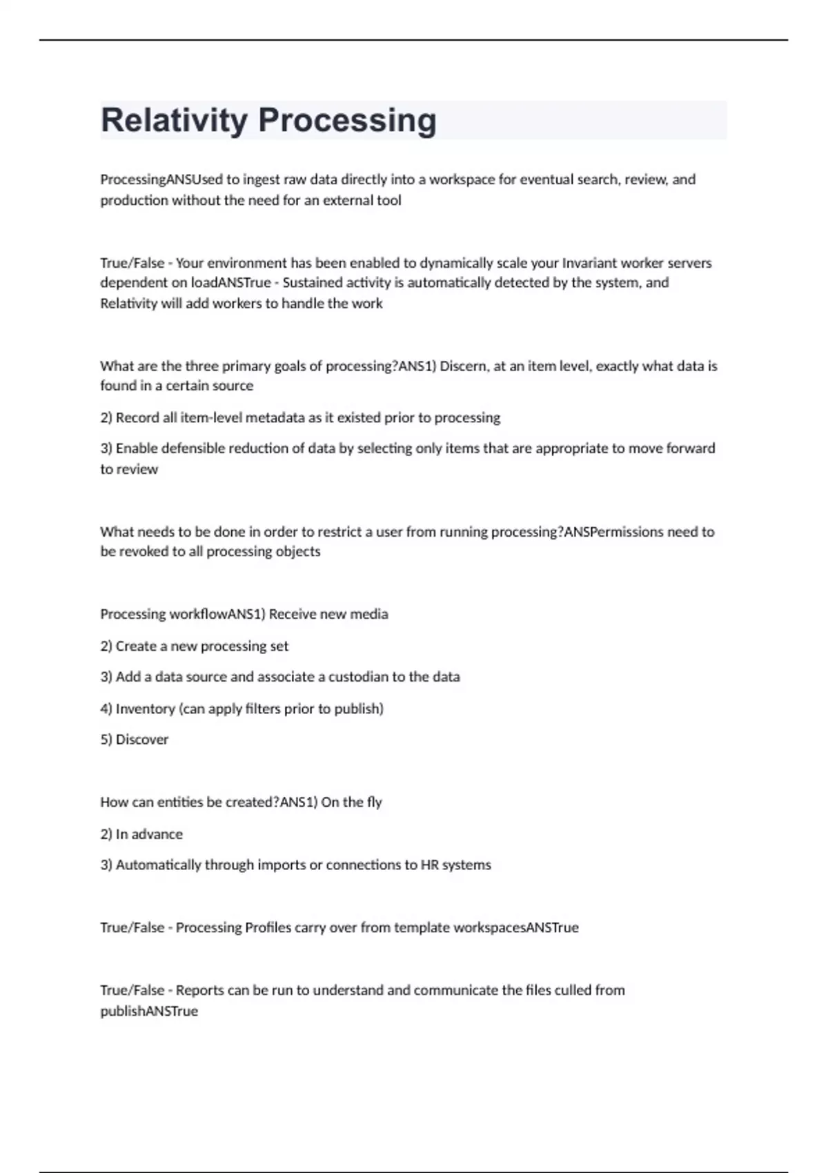 Relativity Processing Exam Questions And Answers (GRADED A+)