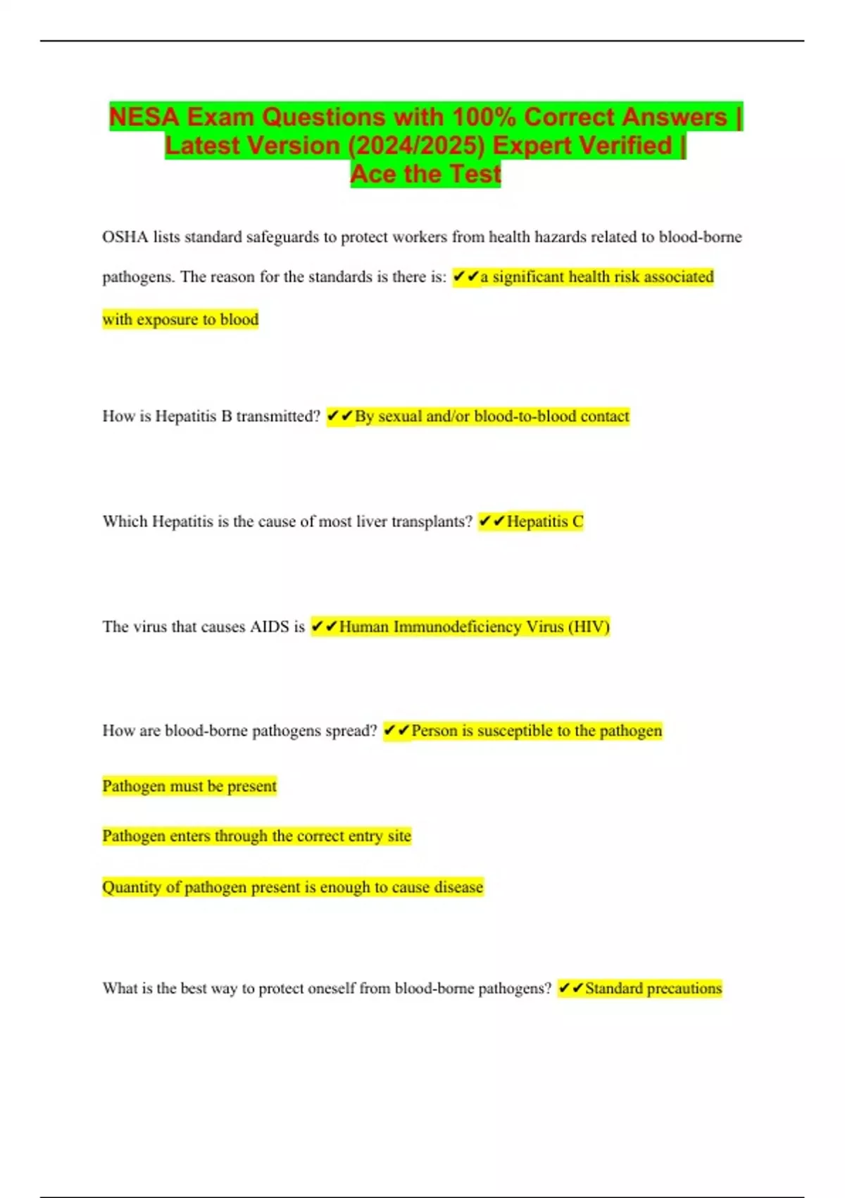 nesa exam questions with 100 correct answers la