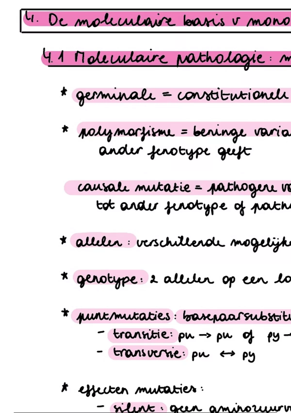 Moleculaire basis van monogenische aandoeningen samengevat aan de hand van de cursus genetica (onderdeel van Cel IV)