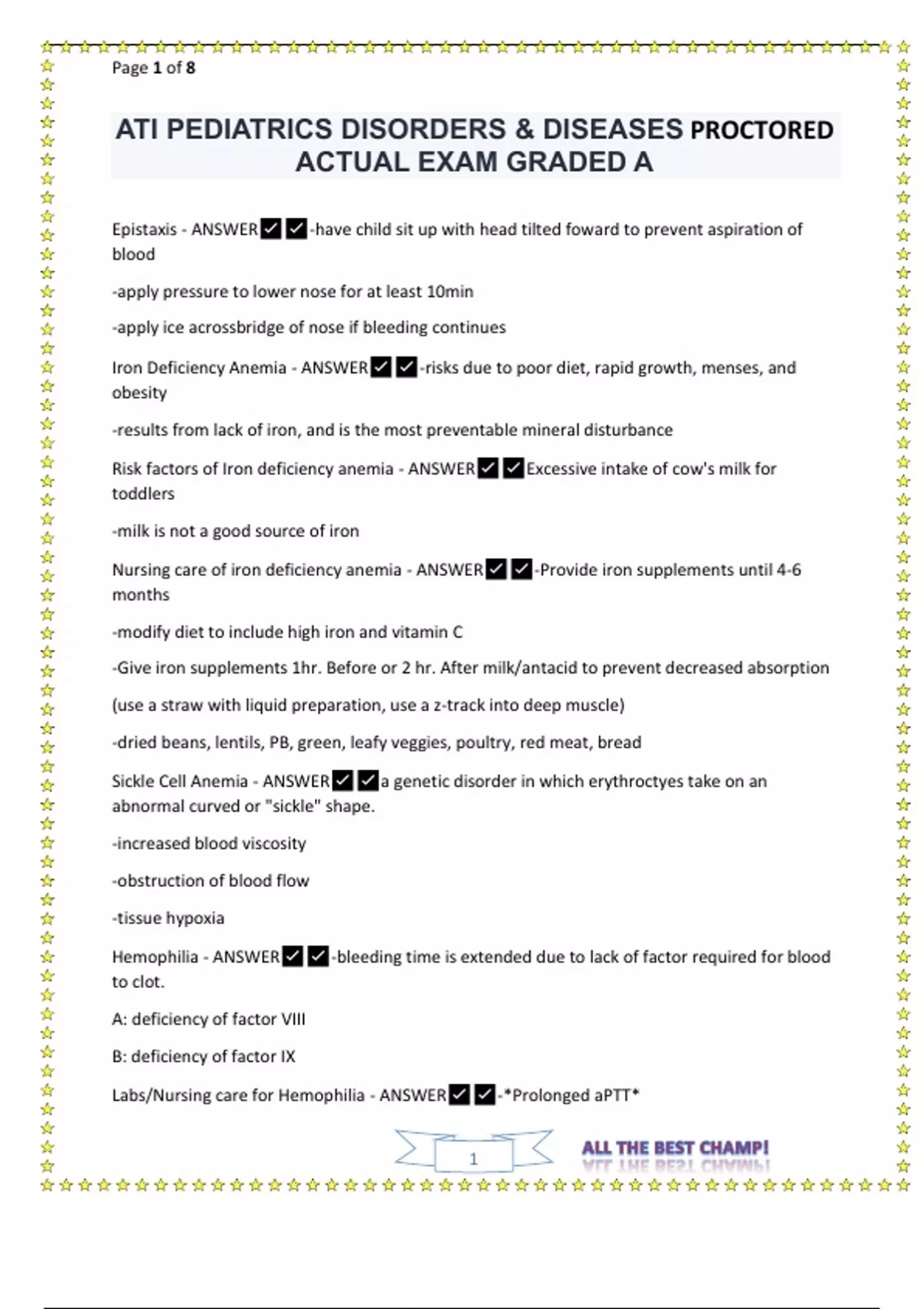 ATI PEDIATRICS DISORDERS & DISEASES PROCTORED ACTUAL EXAM GRADED A