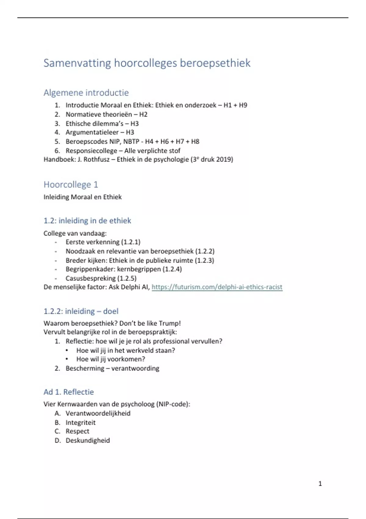 - Noodzaak en relevantie van beroepsethiek (1.2.2)