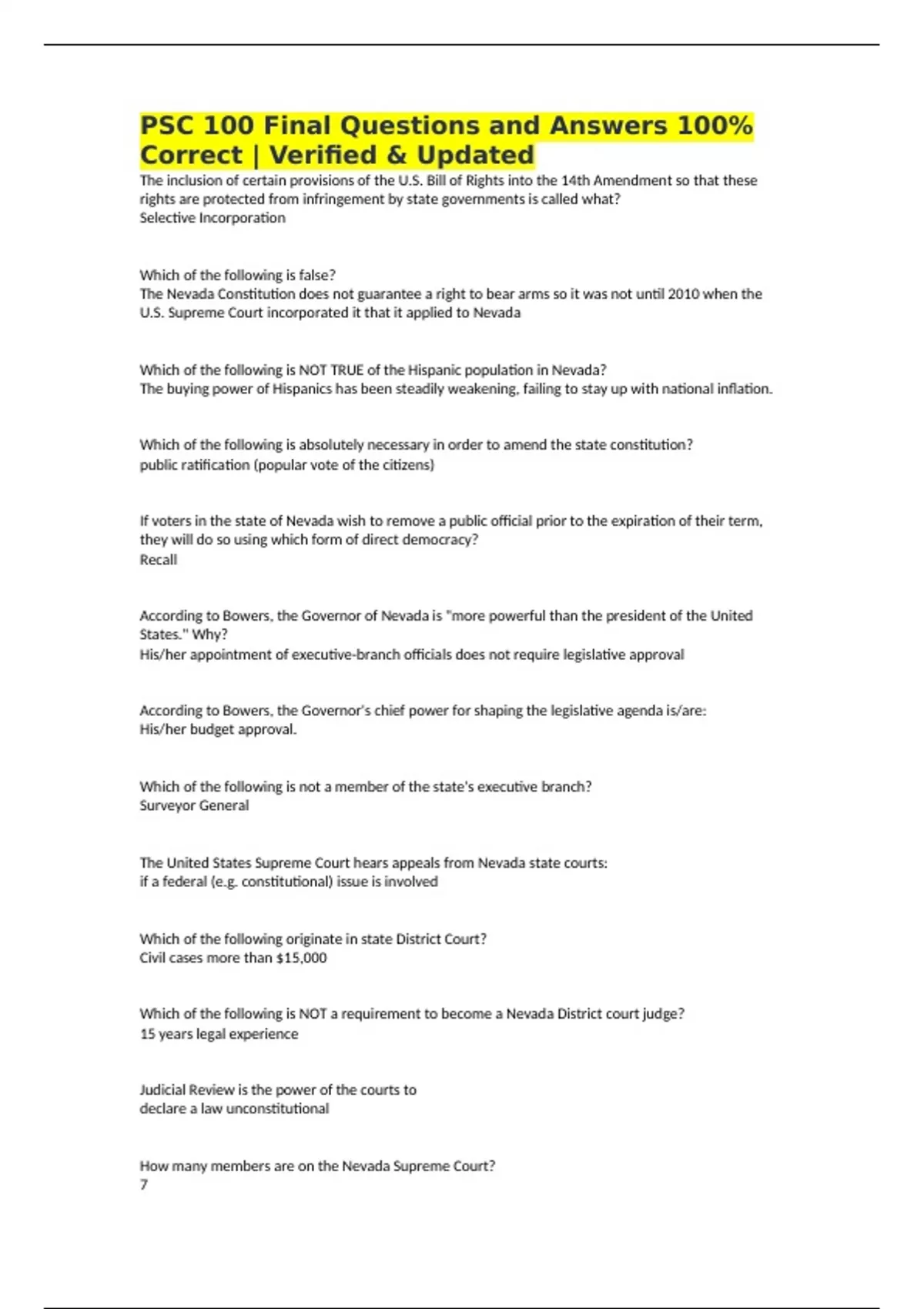 Correct | Verified & Updated