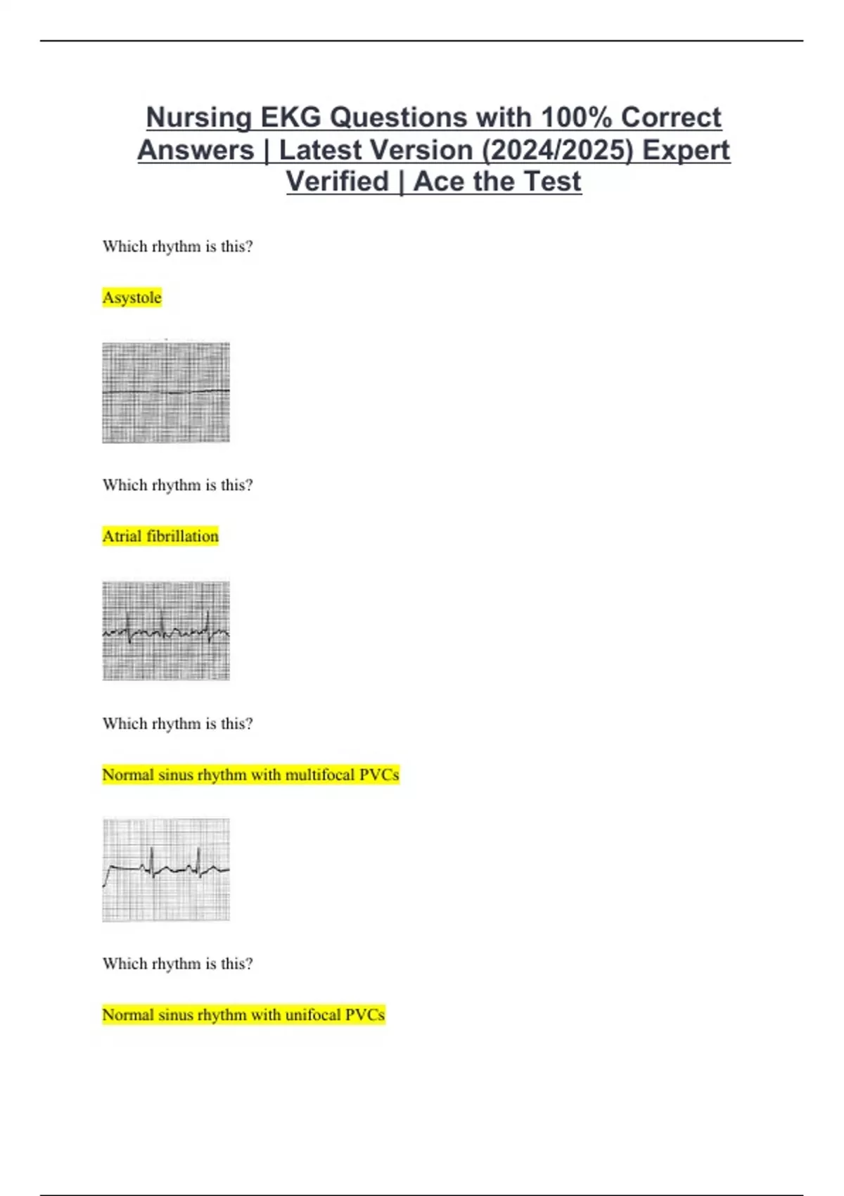 Nursing EKG Questions with 100% Correct Answers | Latest Version (2024/2025) Expert Verified | Ace the Test
