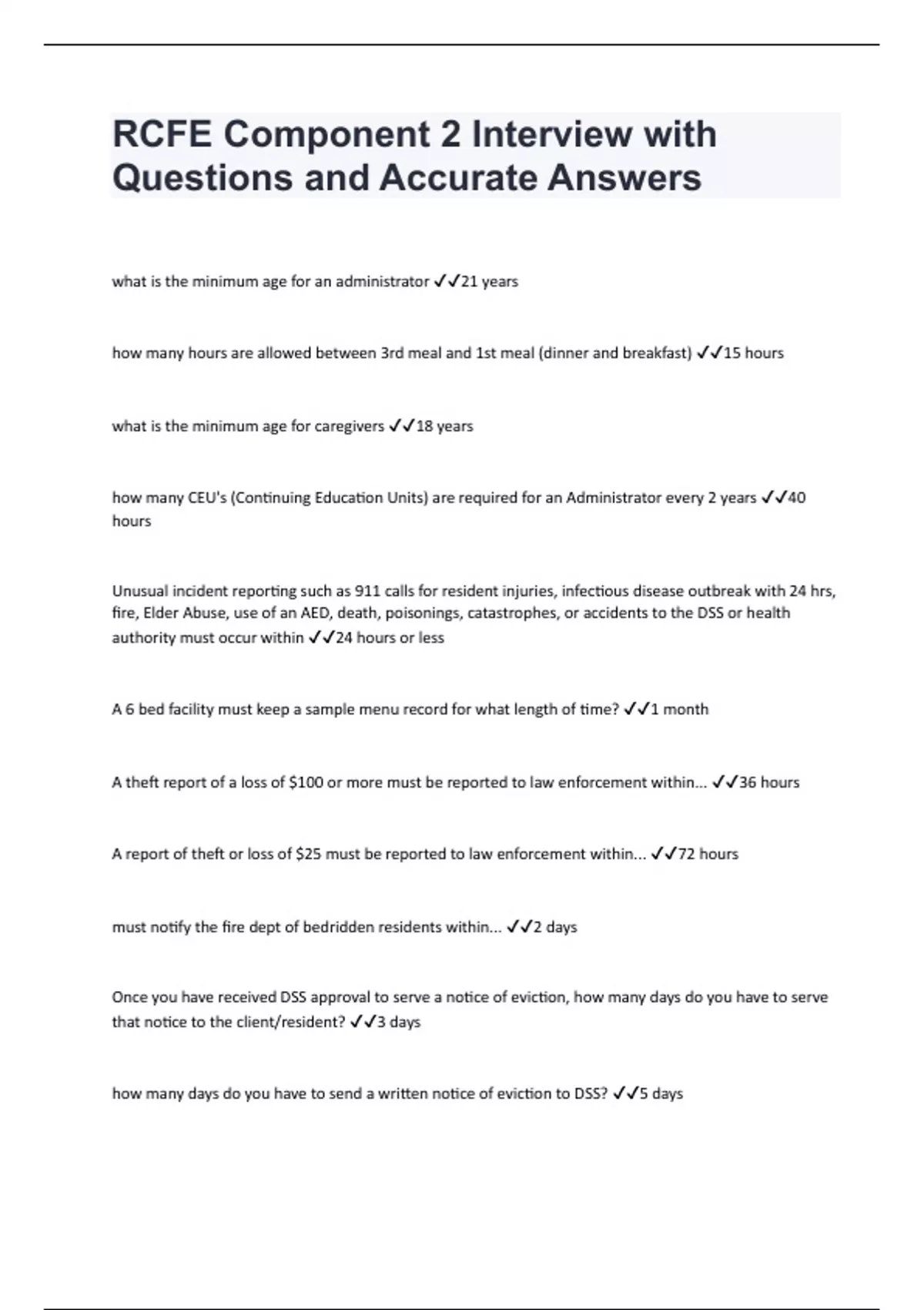 RCFE Component 2 Interview with Questions and Accurate Answers