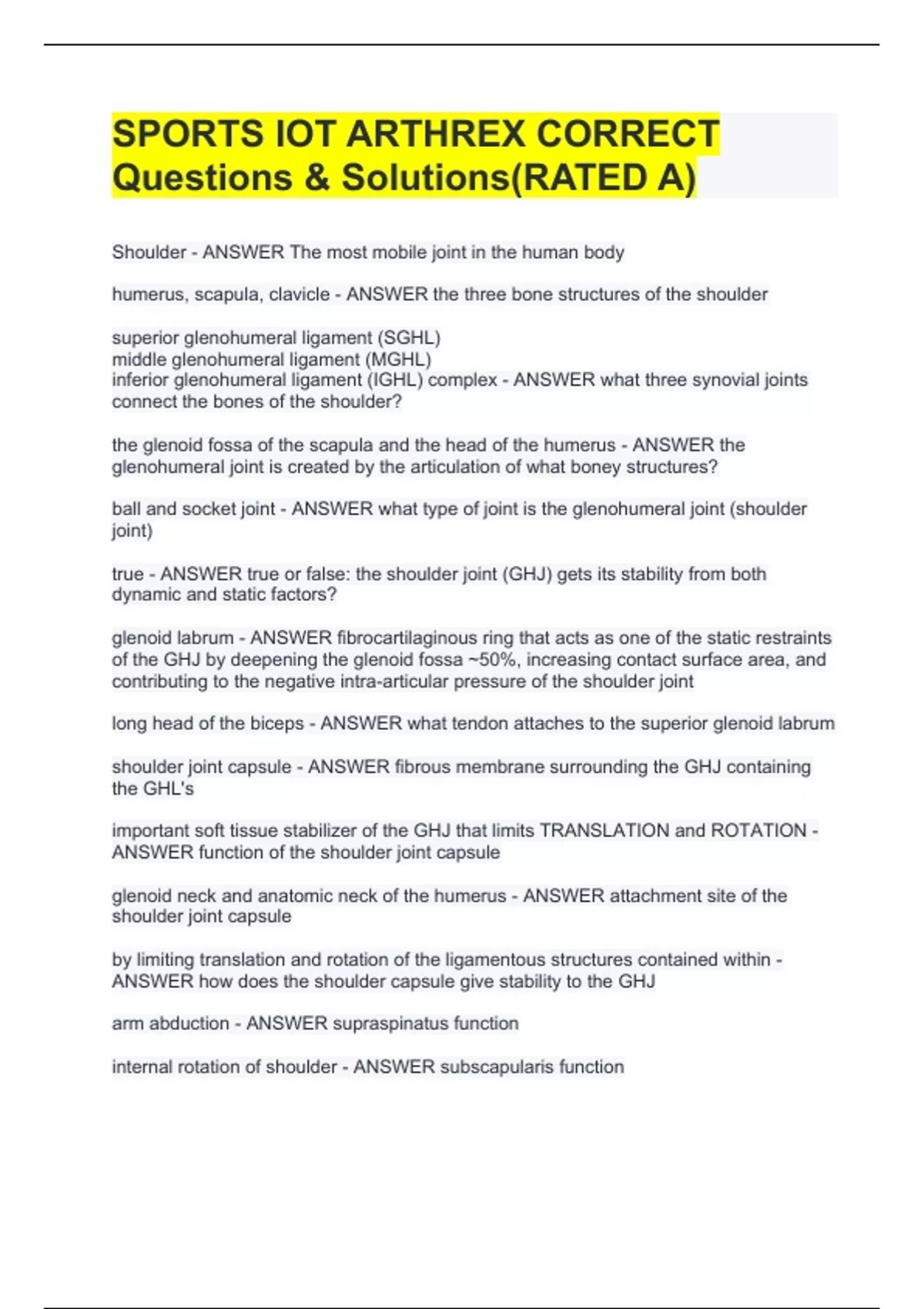 SPORTS IOT ARTHREX CORRECT Questions & Solutions(RATED A)