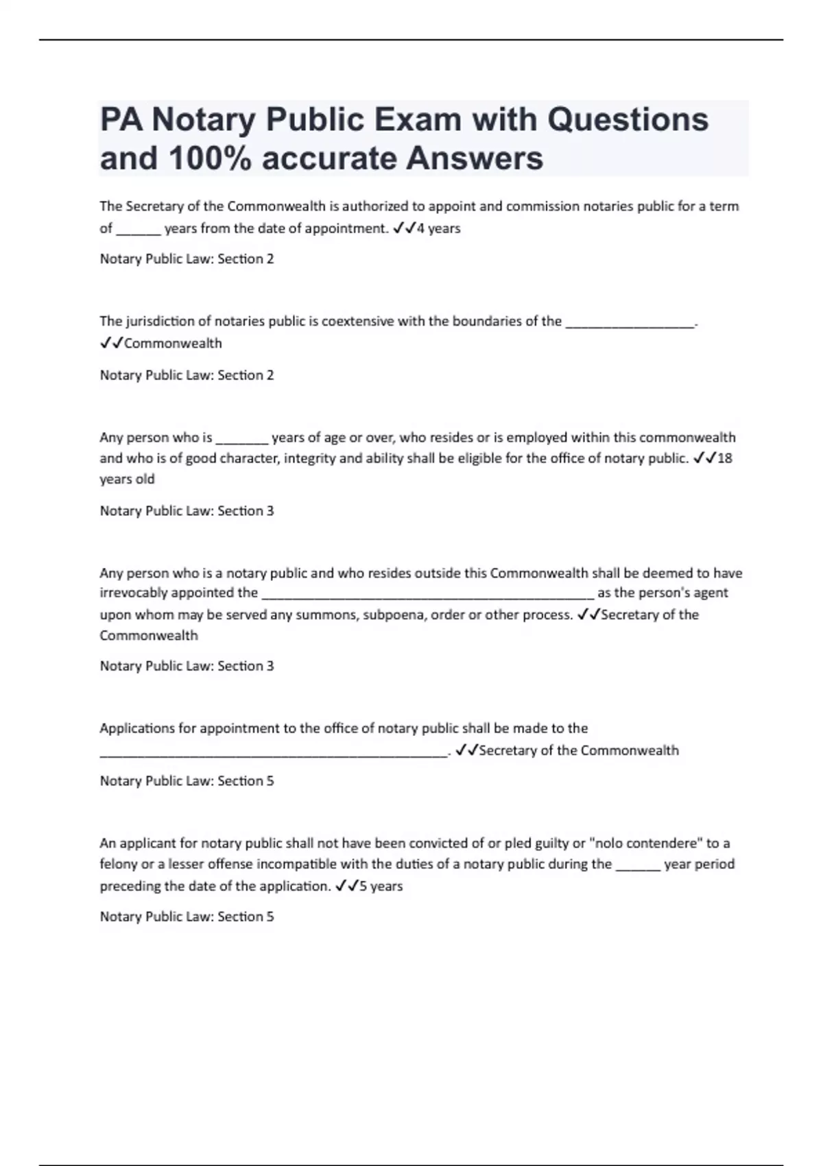 PA Notary Public Exam with Questions and 100% accurate Answers