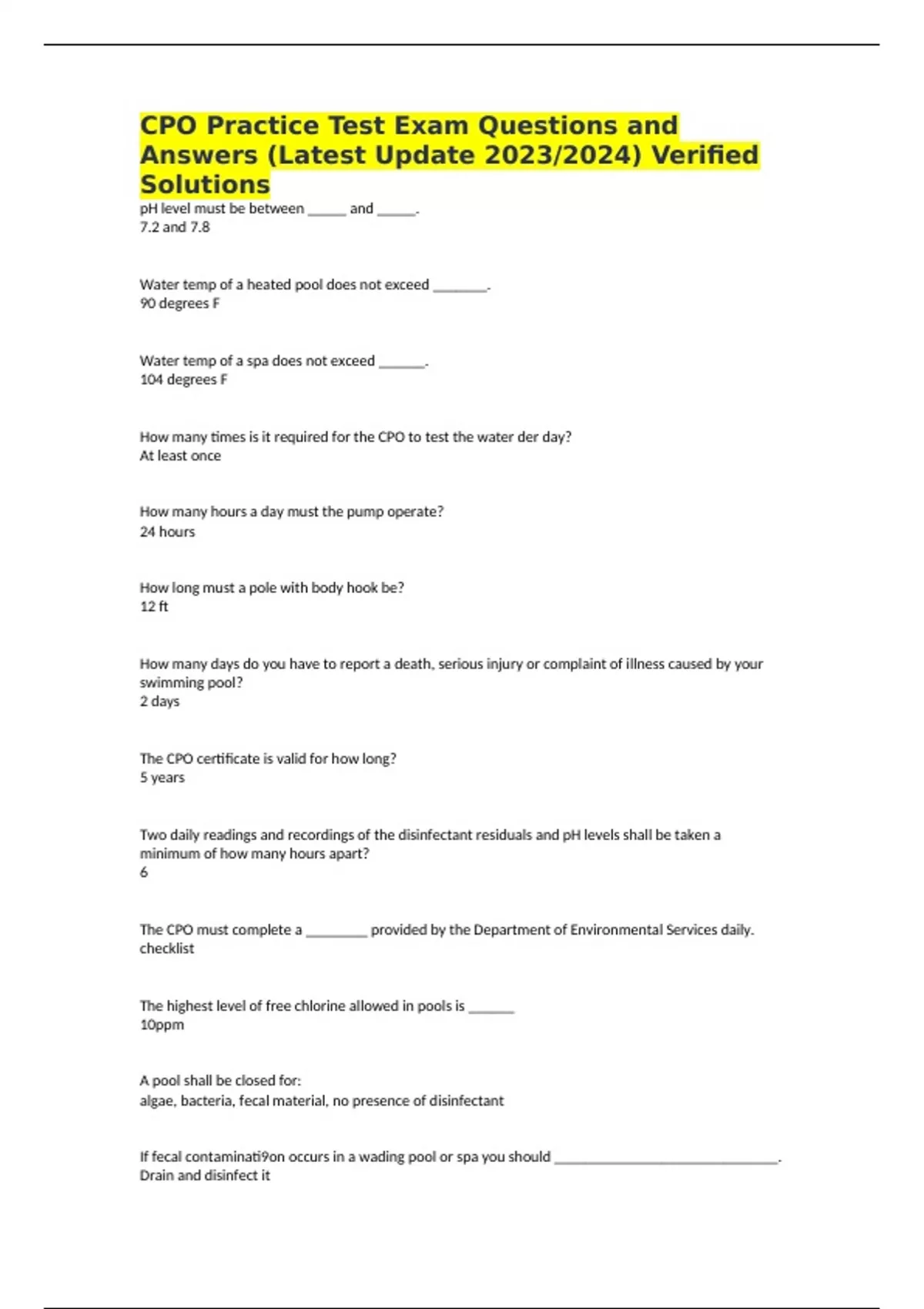 The CPO must complete a ________ provided by the Department of Environmental Services daily.
