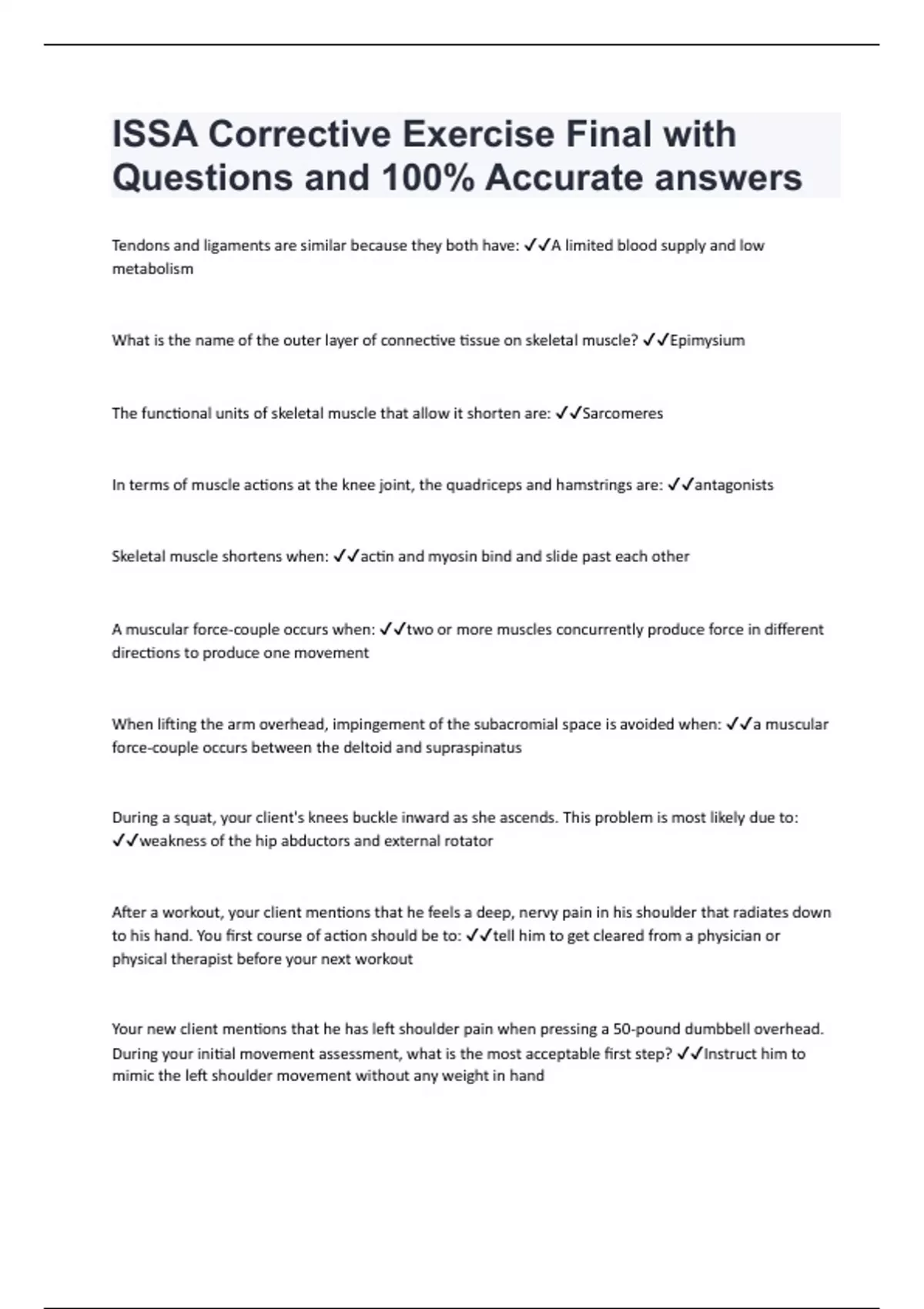 ISSA Corrective Exercise Final with Questions and 100% Accurate answers