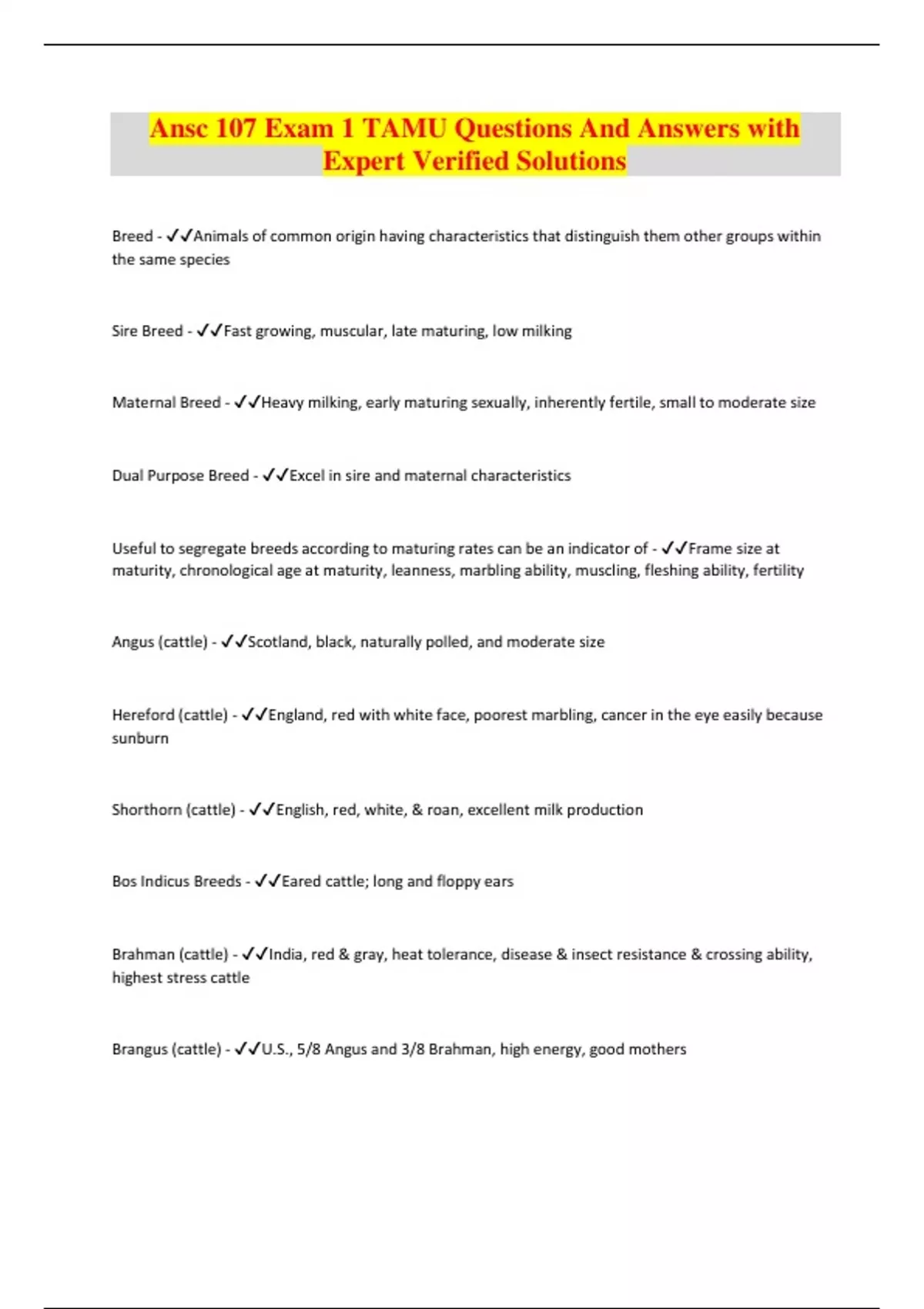 Ansc 107 Exam 1 TAMU Questions And Answers with Expert Verified Solutions