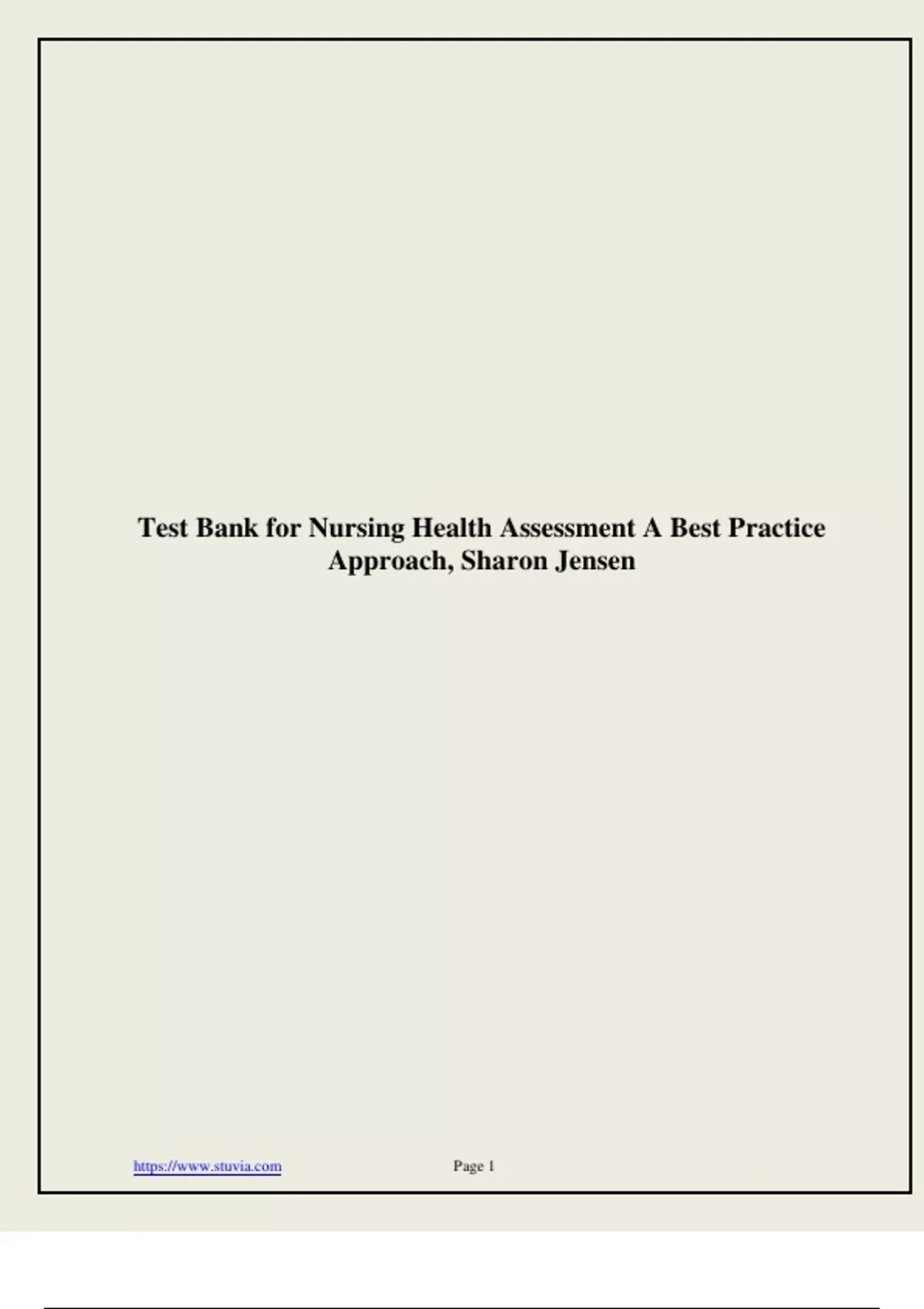 Test Bank for Nursing Health Assessment A Best Practice Approach, Sharon Jensen.
