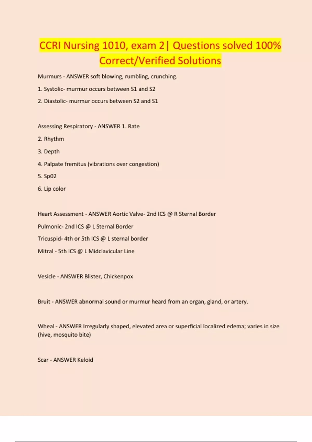 CCRI Nursing 1010, exam 2| Questions solved 100% Correct/Verified Solutions