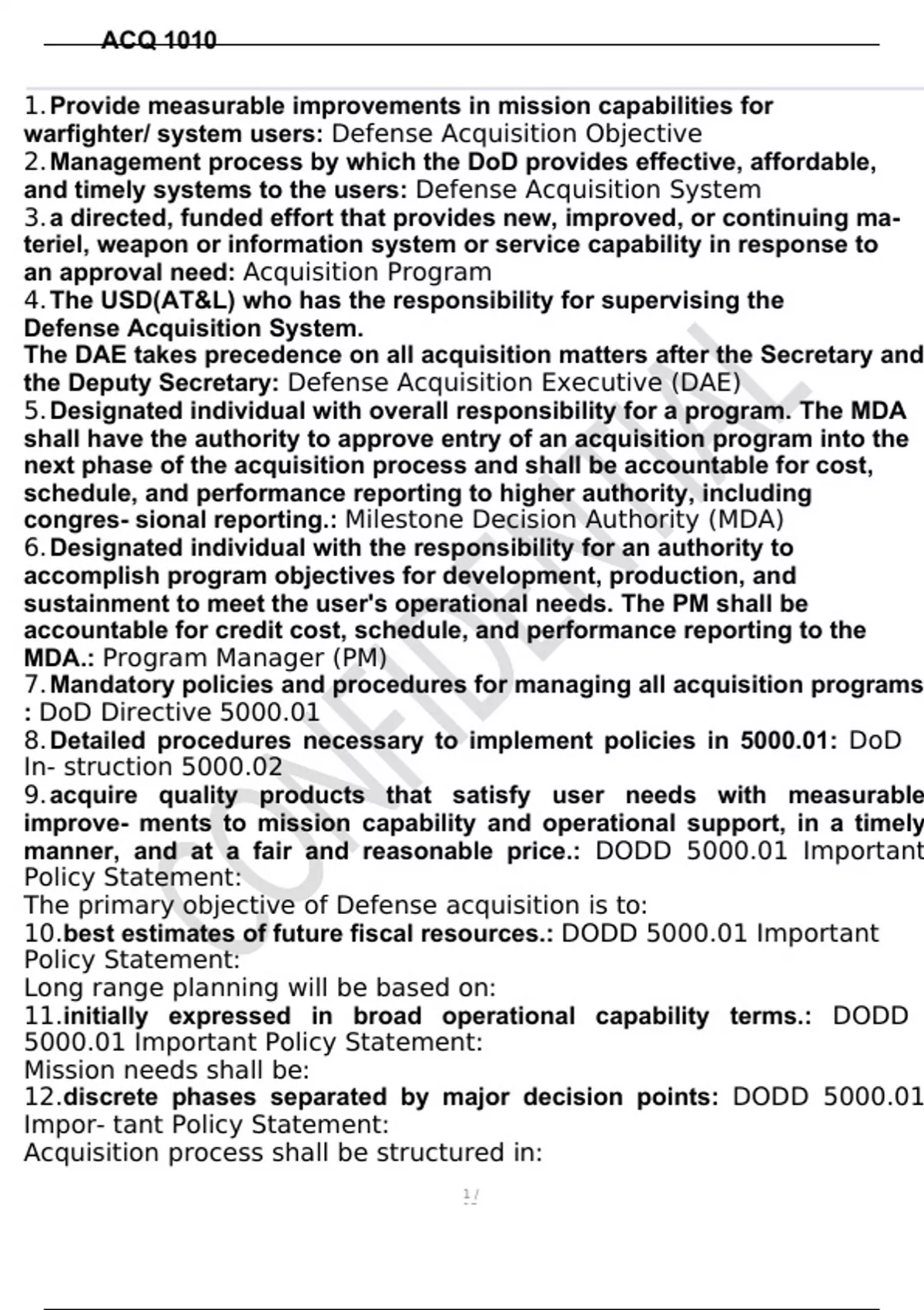 Exam of 13 pages for the course Defense Acquisition University: ACQ- ACQ 1010 at Department Of Defense Education Activity (ACQ 1010)