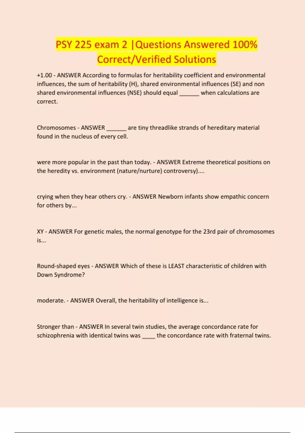 psy 225 exam questions answered 100 correct