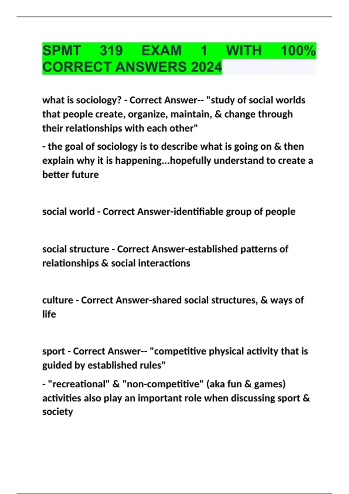 SPMT 319 EXAM 1 WITH 100% CORRECT ANSWERS 2024