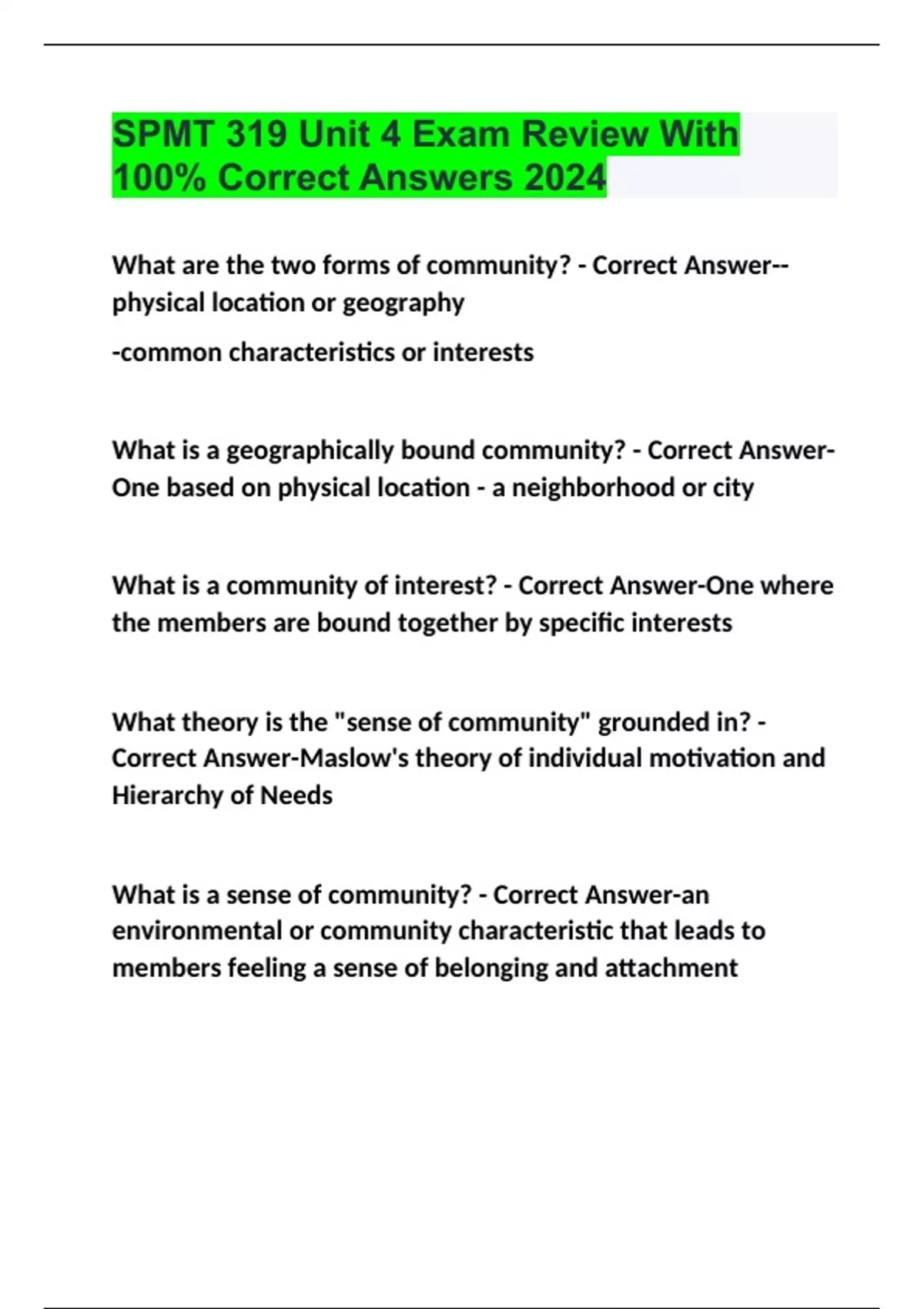SPMT 319 Unit 4 Exam Review With 100% Correct Answers 2024