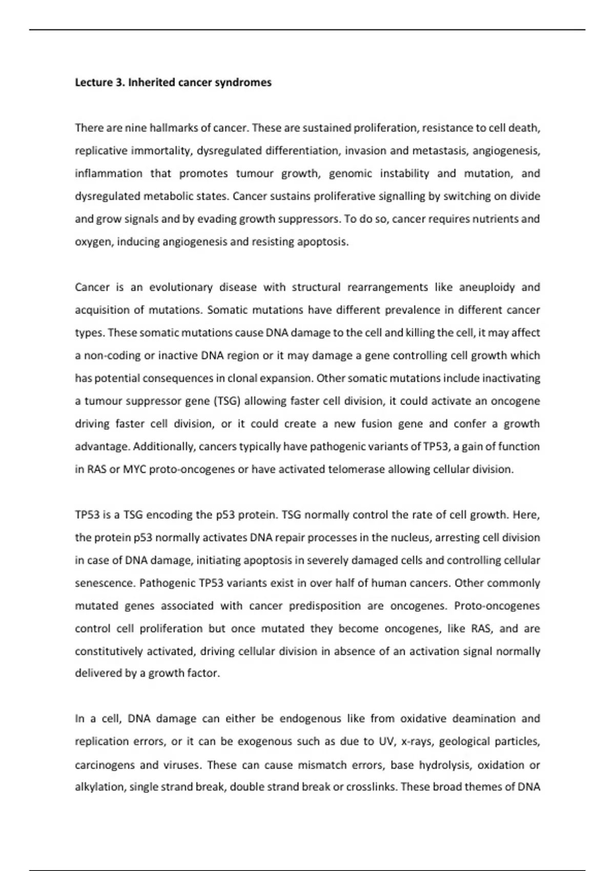 This essay focuses on the inherited cancer syndromes. Some examples include Lynch syndrome, familial adenomatous polyposis (FAP), BRCA1/2 related disease, multiple endocrine neoplasia and Li-Fraumeni syndrome. Lynch syndrome is caused by impaired DNA repair, FAP is caused by a faulty TSG, BRCA1/2 related disease is caused by impaired double stranded break repair and Li-Fraumeni syndrome is associated with TP53 defects.