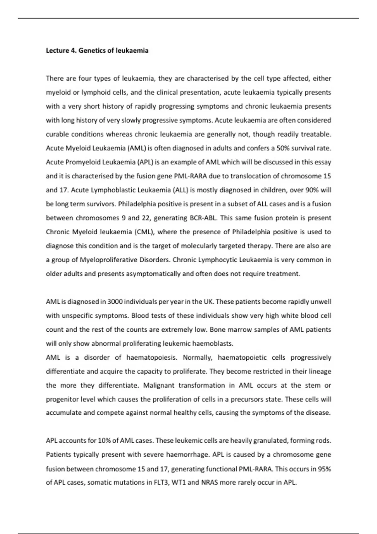 Lecture 4. Genetics of leukaemia