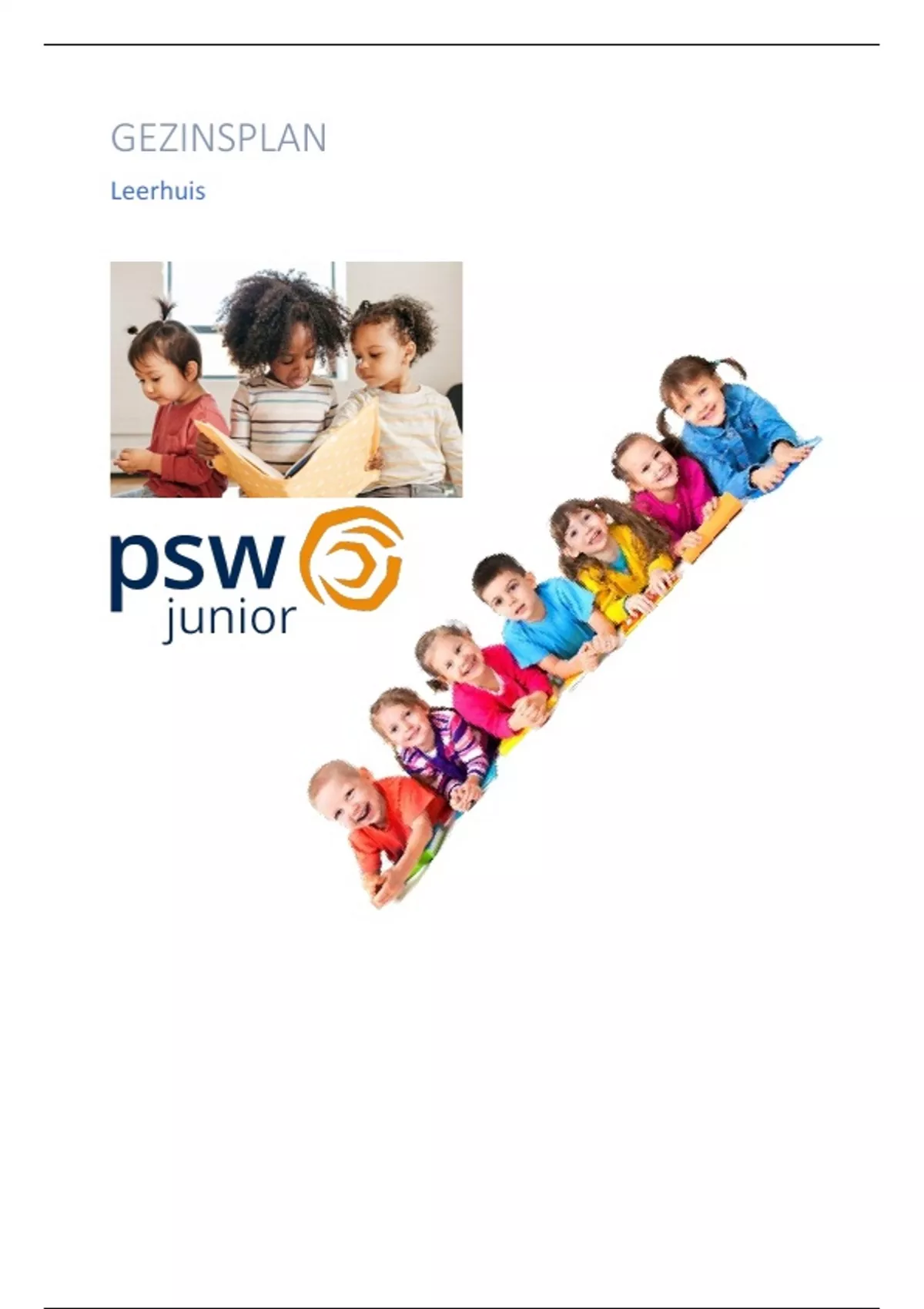 Het gezinsplan heeft betrekking tot de organisatie: PSW Junior. Deze stagelocatie bevindt zich in de