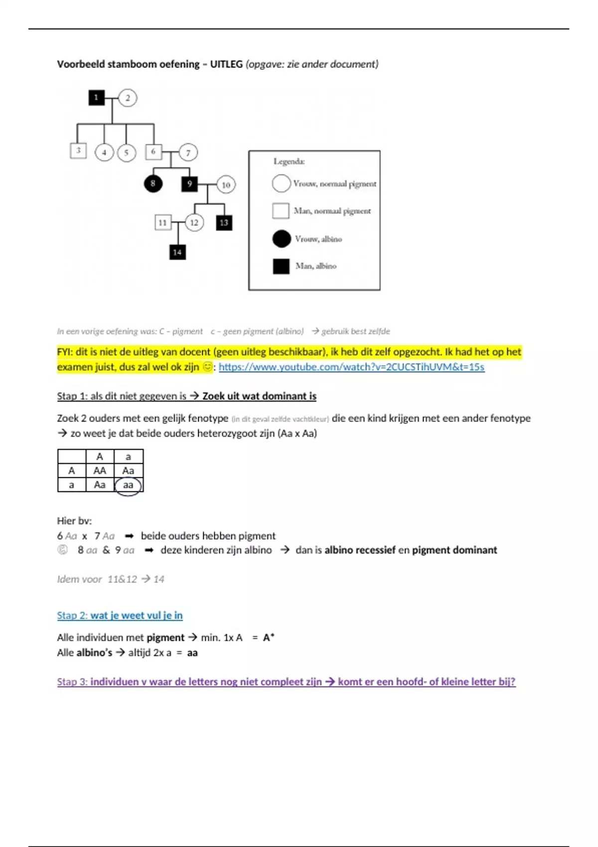 Voorbeeld stamboom oefening – UITLEG (opgave: zie ander document)