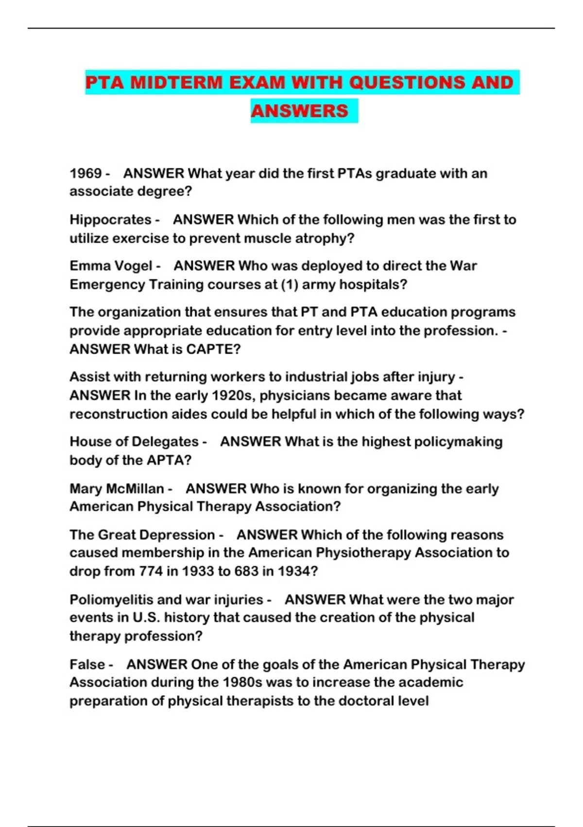 PTA MIDTERM EXAM WITH QUESTIONS AND ANSWERS ...