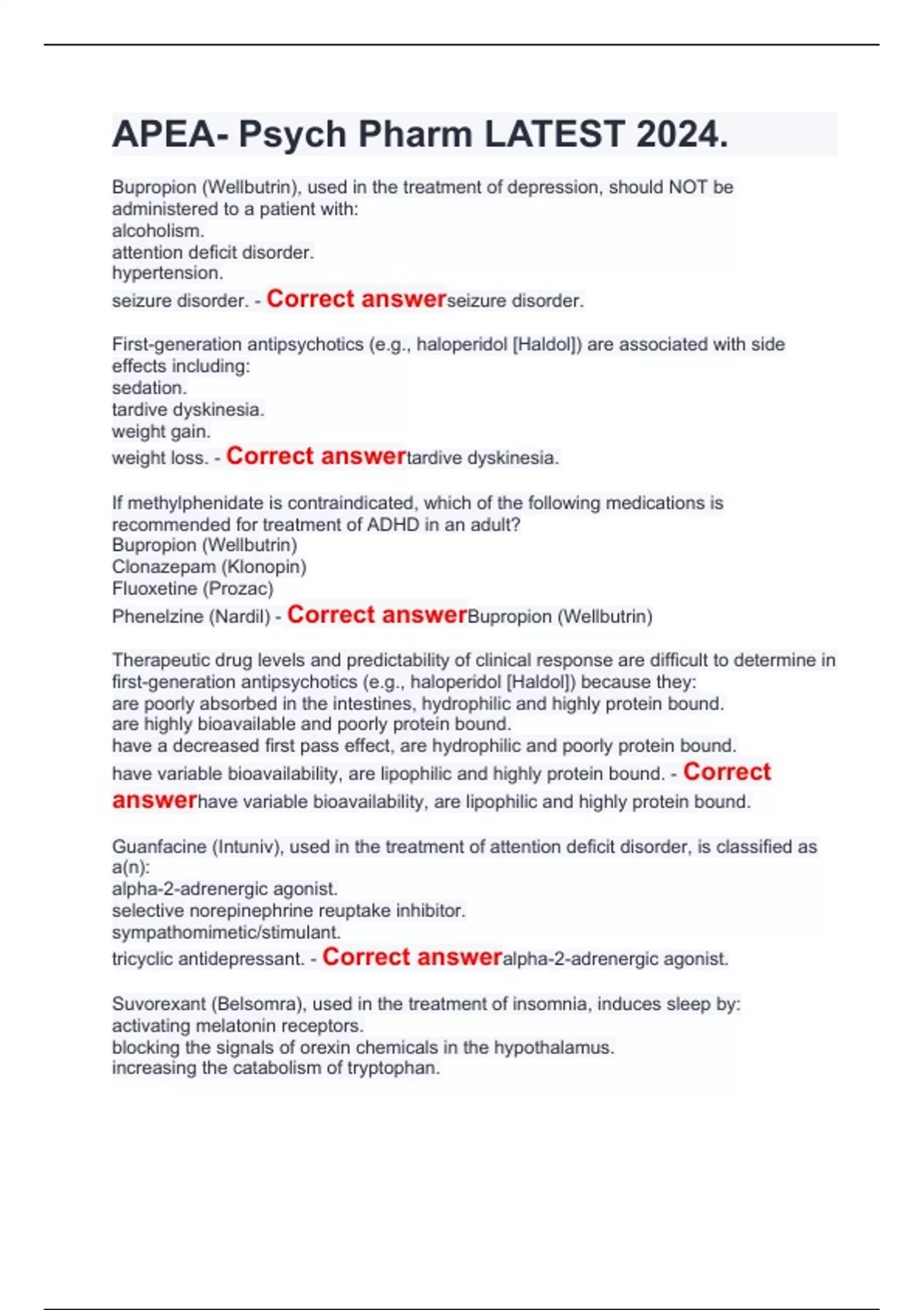 APEA- Psych Pharm LATEST 2024APEA- Psych Pharm LATEST 2024APEA- Psych Pharm LATEST 2024