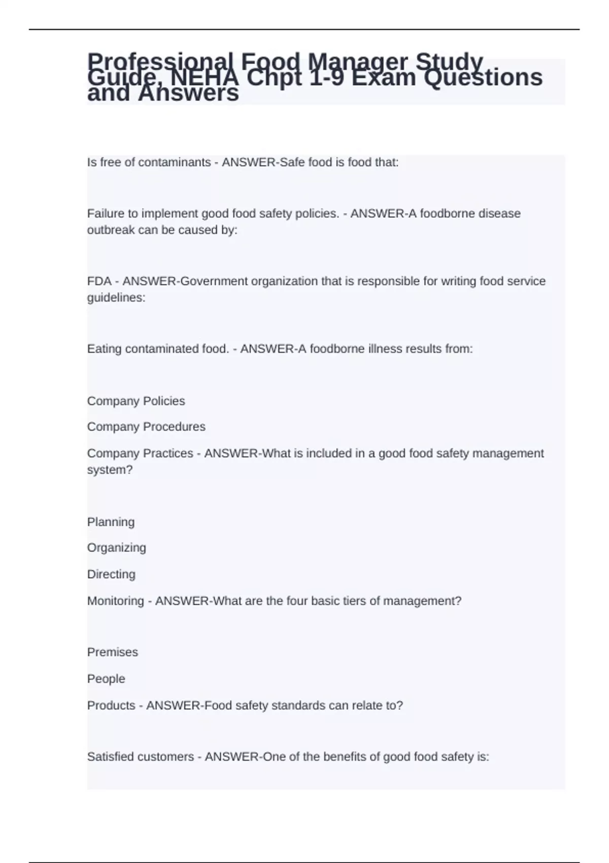 Guide, NEHA Chpt 1-9 Exam Questions