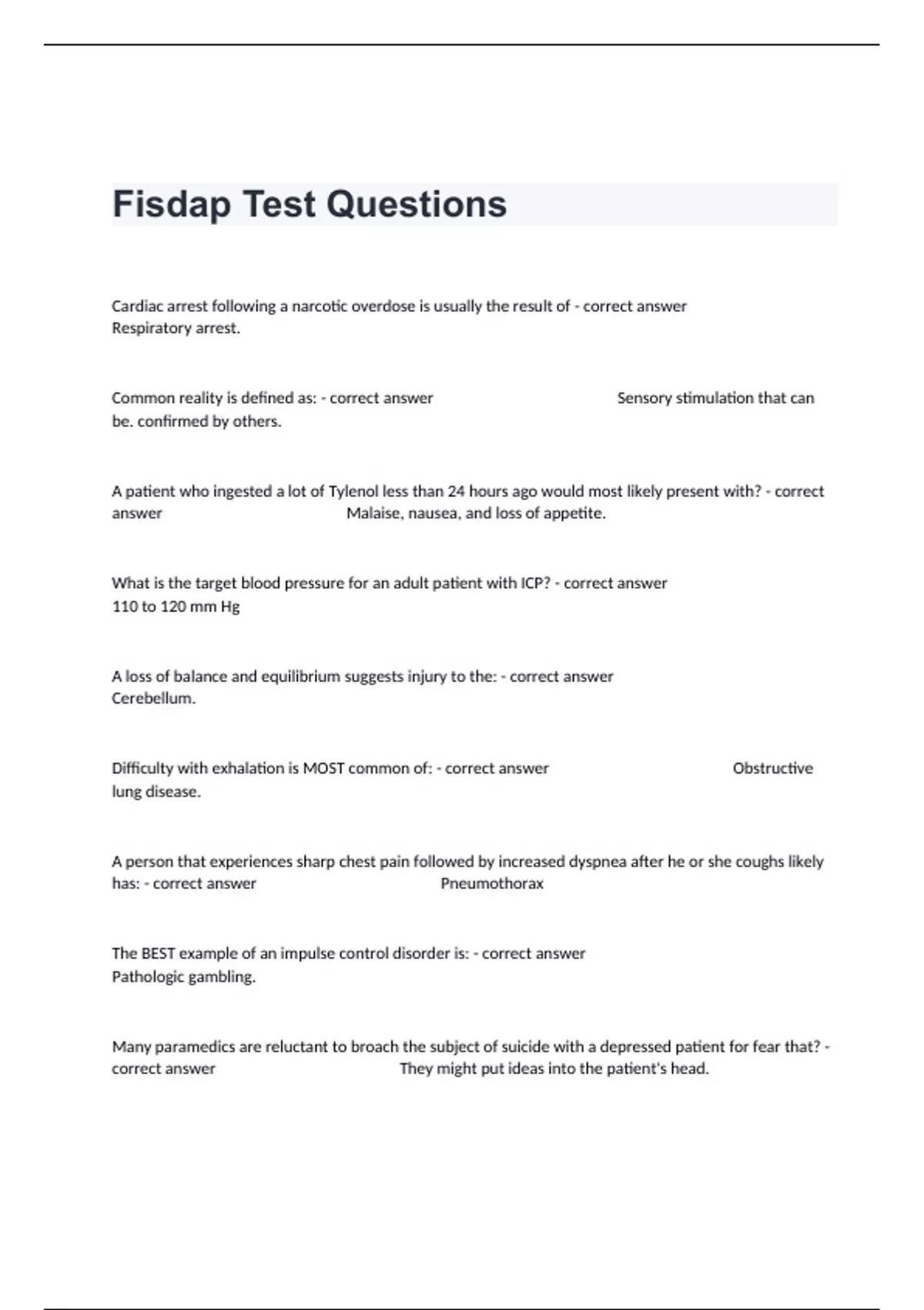 Fisdap Test Questions With Complete Answers 100% Verified.