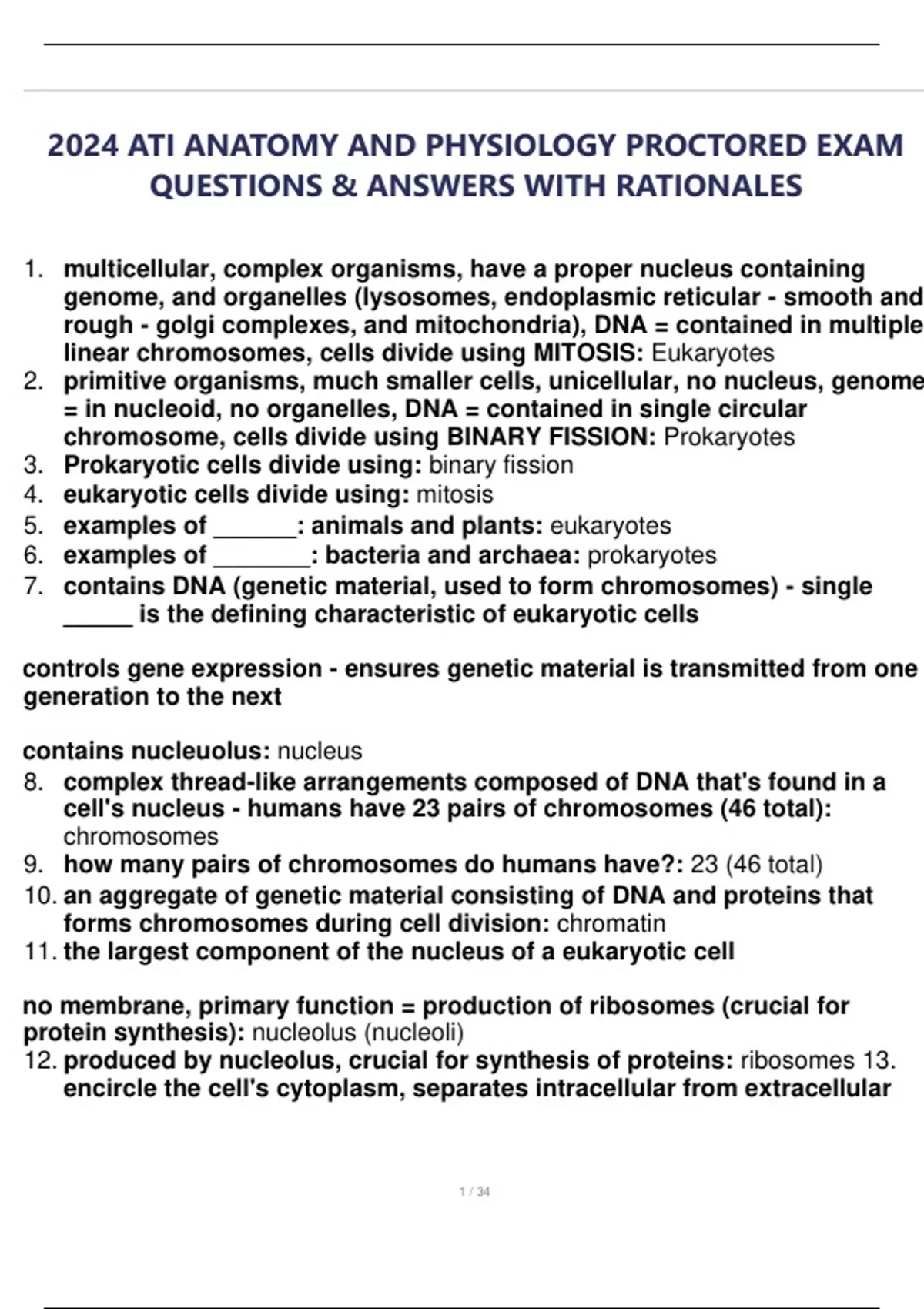 2024 ATI ANATOMY AND PHYSIOLOGY PROCTORED EXAM QUESTIONS & ANSWERS WITH RATIONALES