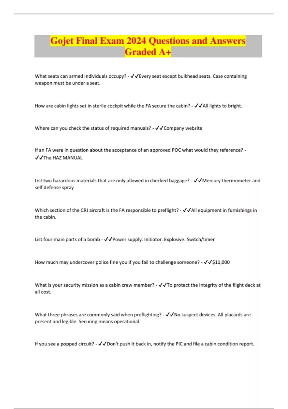 Gojet Final Exam 2024 Questions and Answers Graded A+
