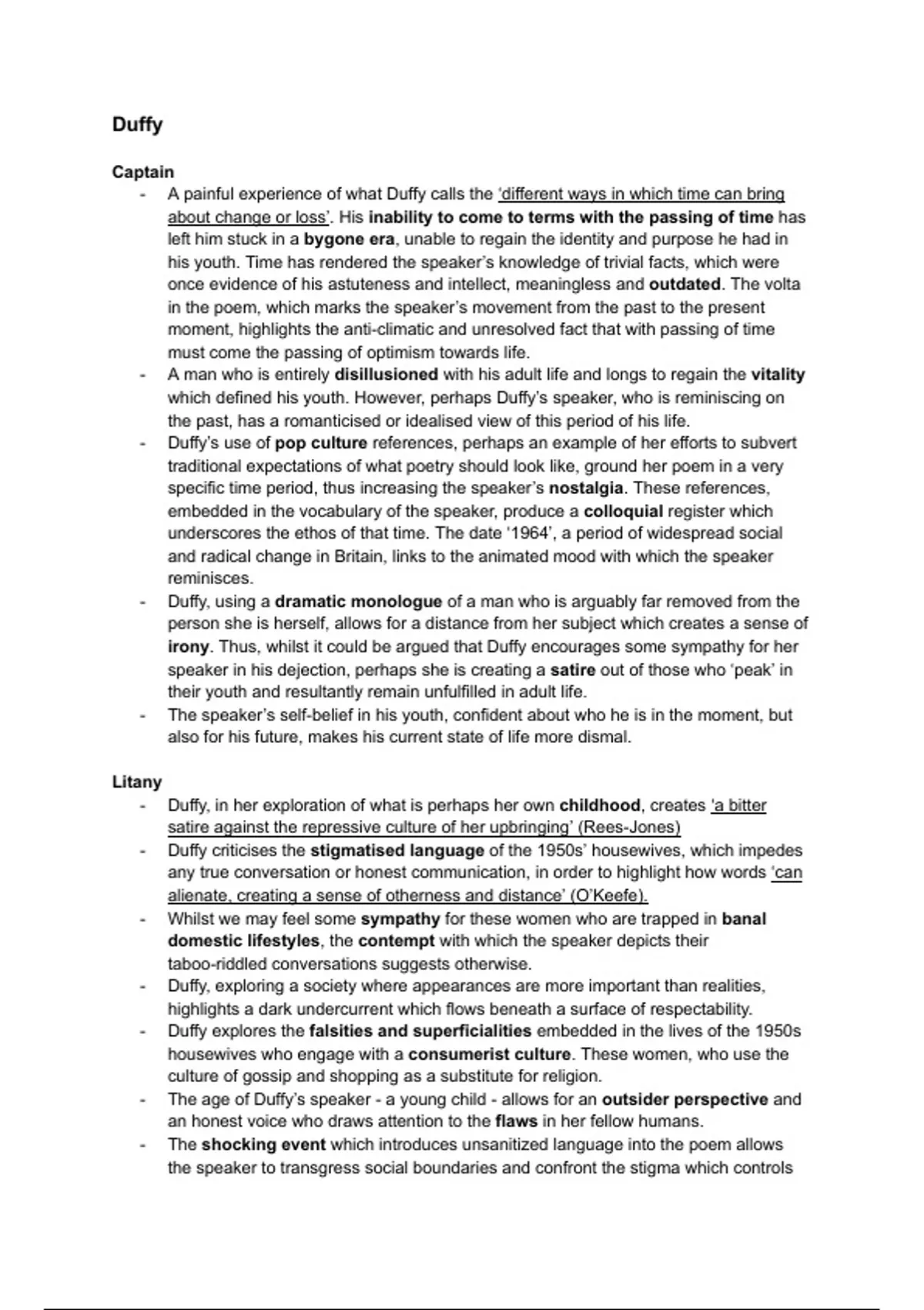 - Duffy criticises the stigmatised language of the 1950s’ housewives, which impedes