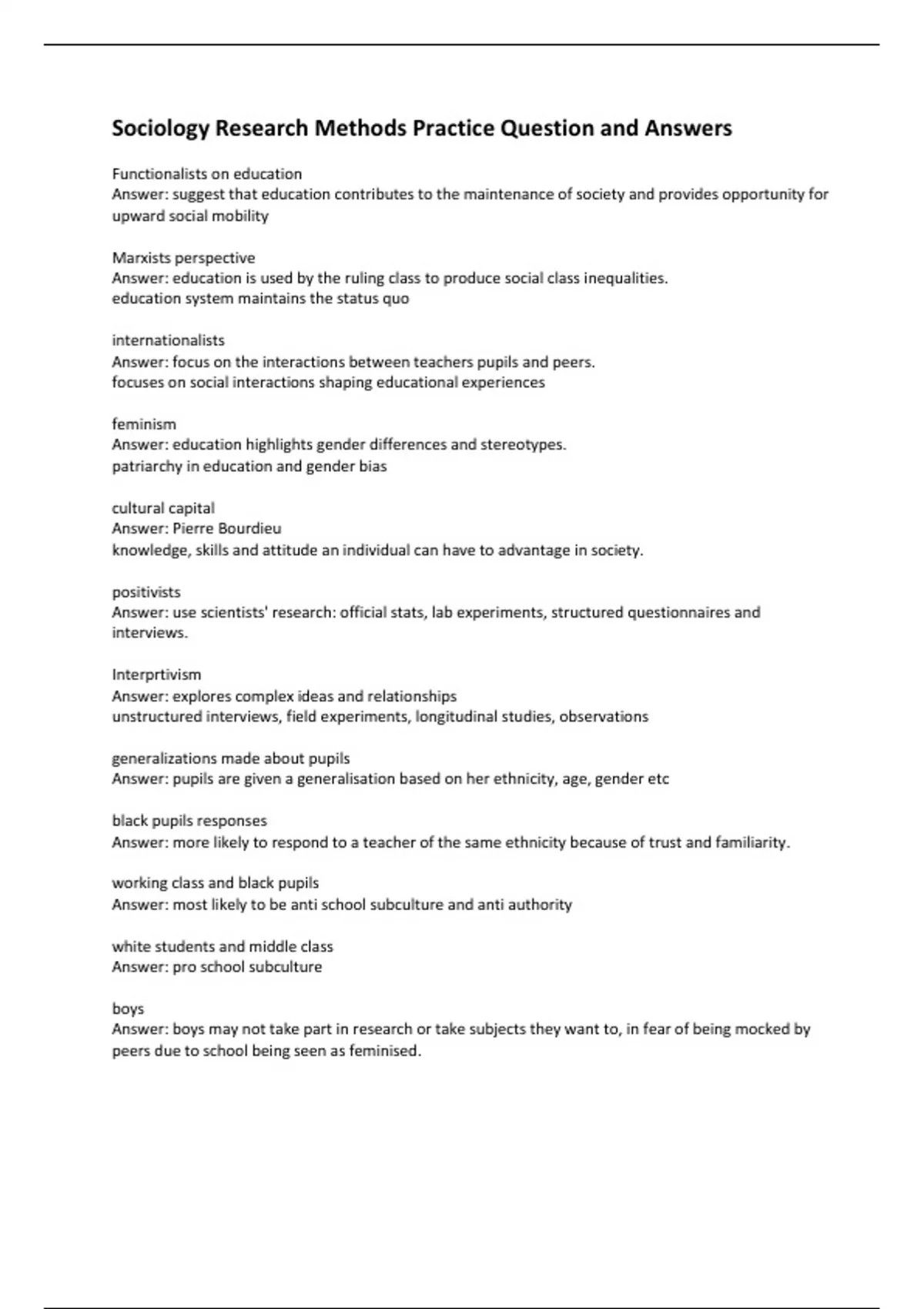 Sociology Research Education with Research Methods Exam Sociology Research Revision exam Test Sociology Research past paper Sociology Research question and answers Sociology Research PDF notes Education With Research Methods - Sociology