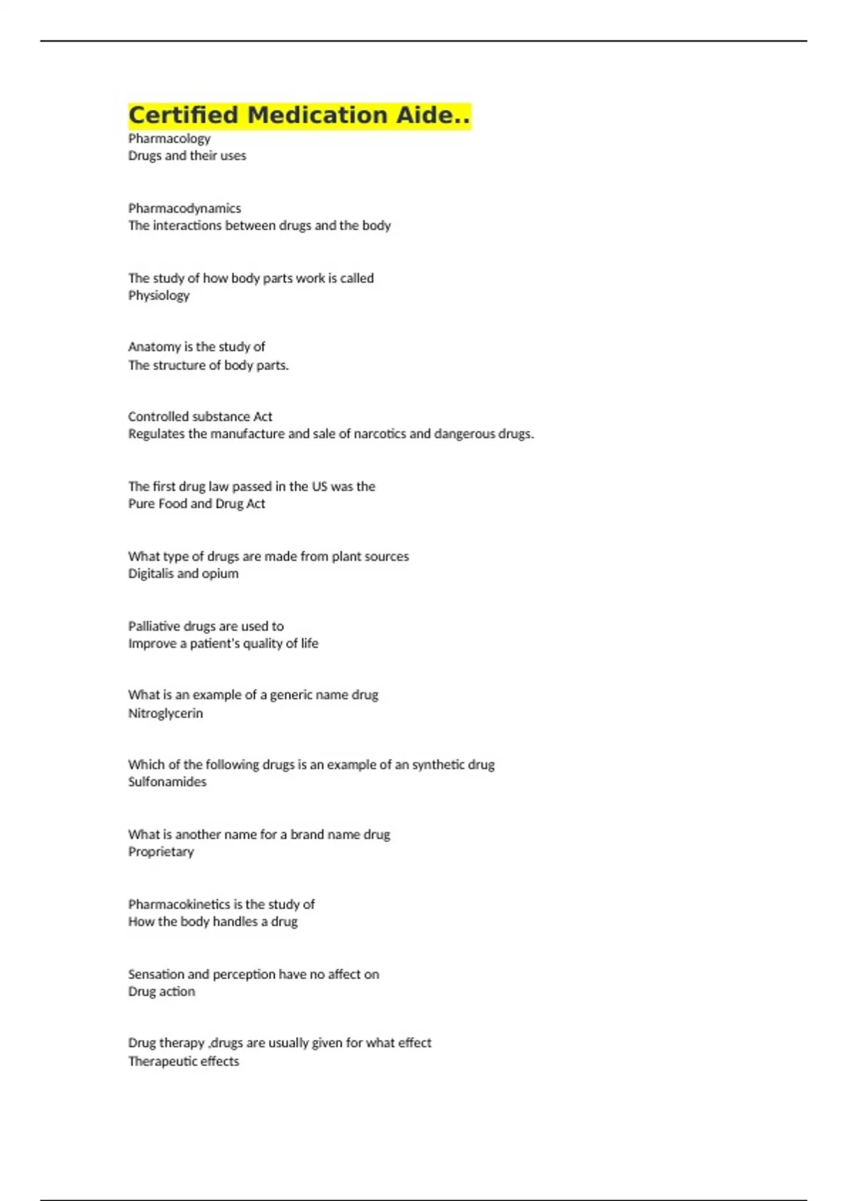 Drugs and their uses