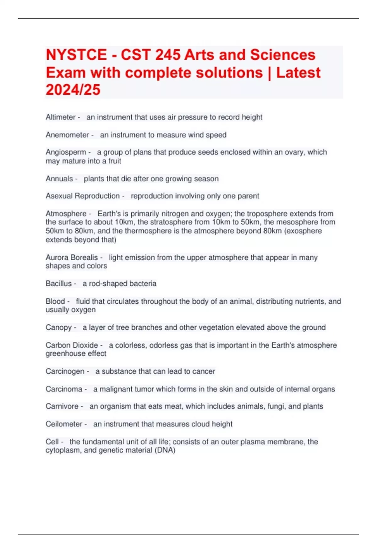 NYSTCE - CST 245 Arts and Sciences Exam with complete solutions | Latest 2024/25