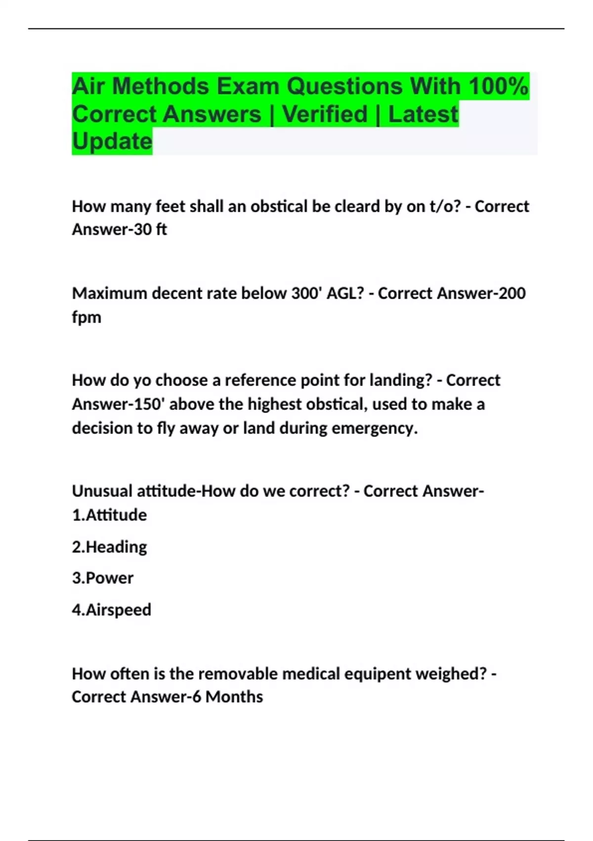 Air Methods Exam Questions With 100% Correct Answers | Verified | Latest Update