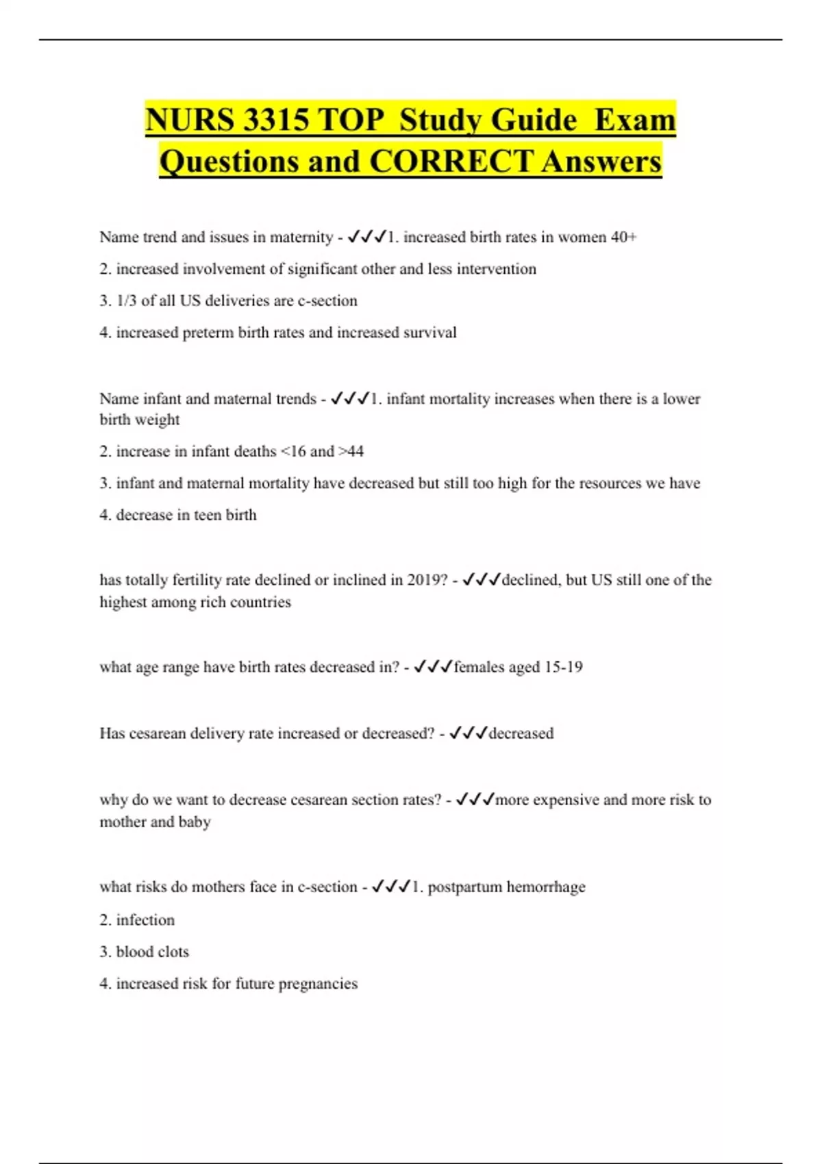 NURS 3315 TOP Study Guide Exam Questions and CORRECT Answers