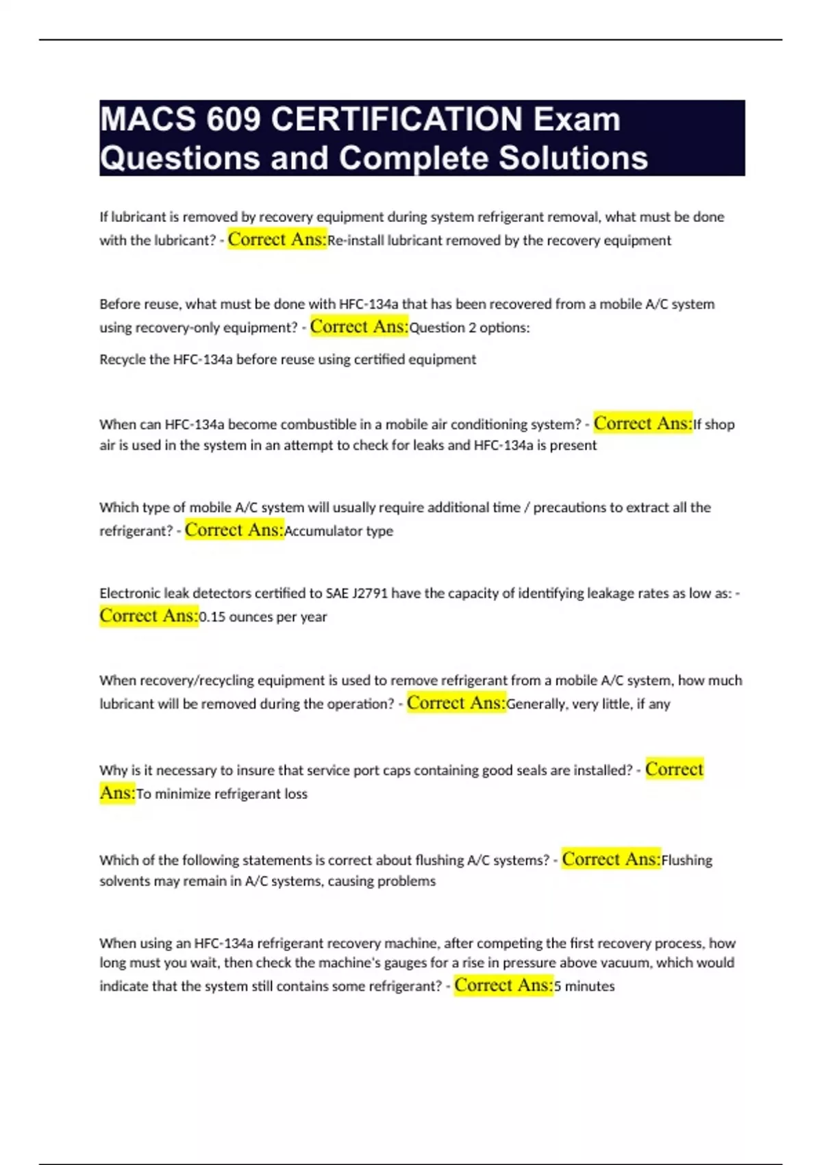 macs 609 certification exam questions and complete