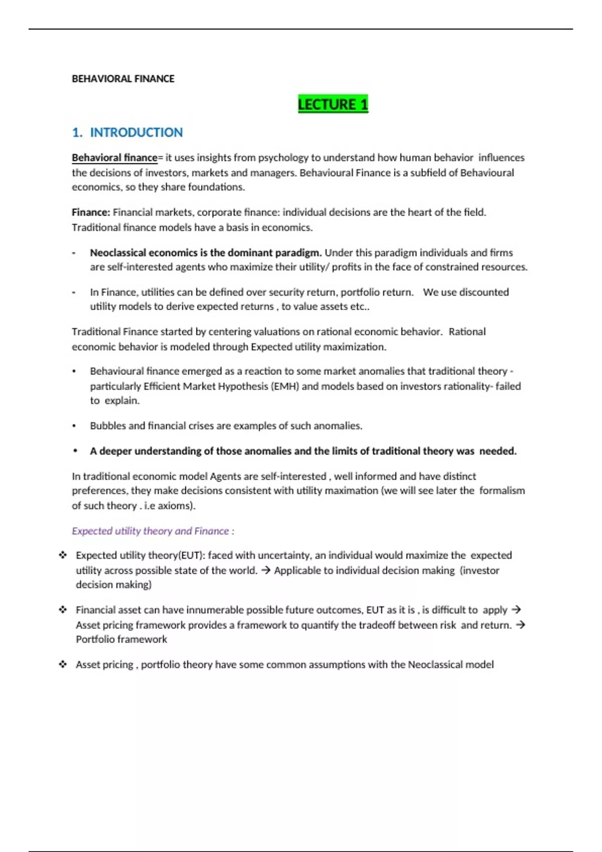 Behavioral Finance Summary - Behavioral Finance F710399A