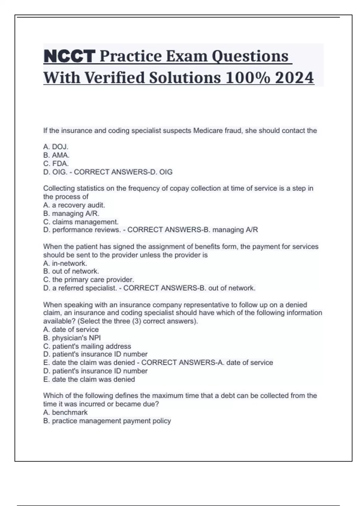 NCCT Practice Exam Questions With Verified Solutions 100% 2024