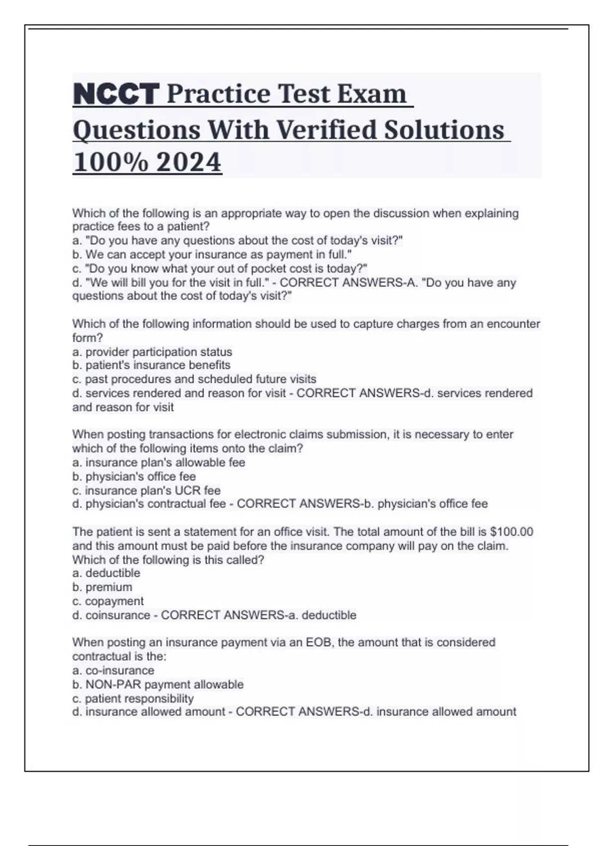 NCCT Practice Test Exam Questions With Verified Solutions 100% 2024