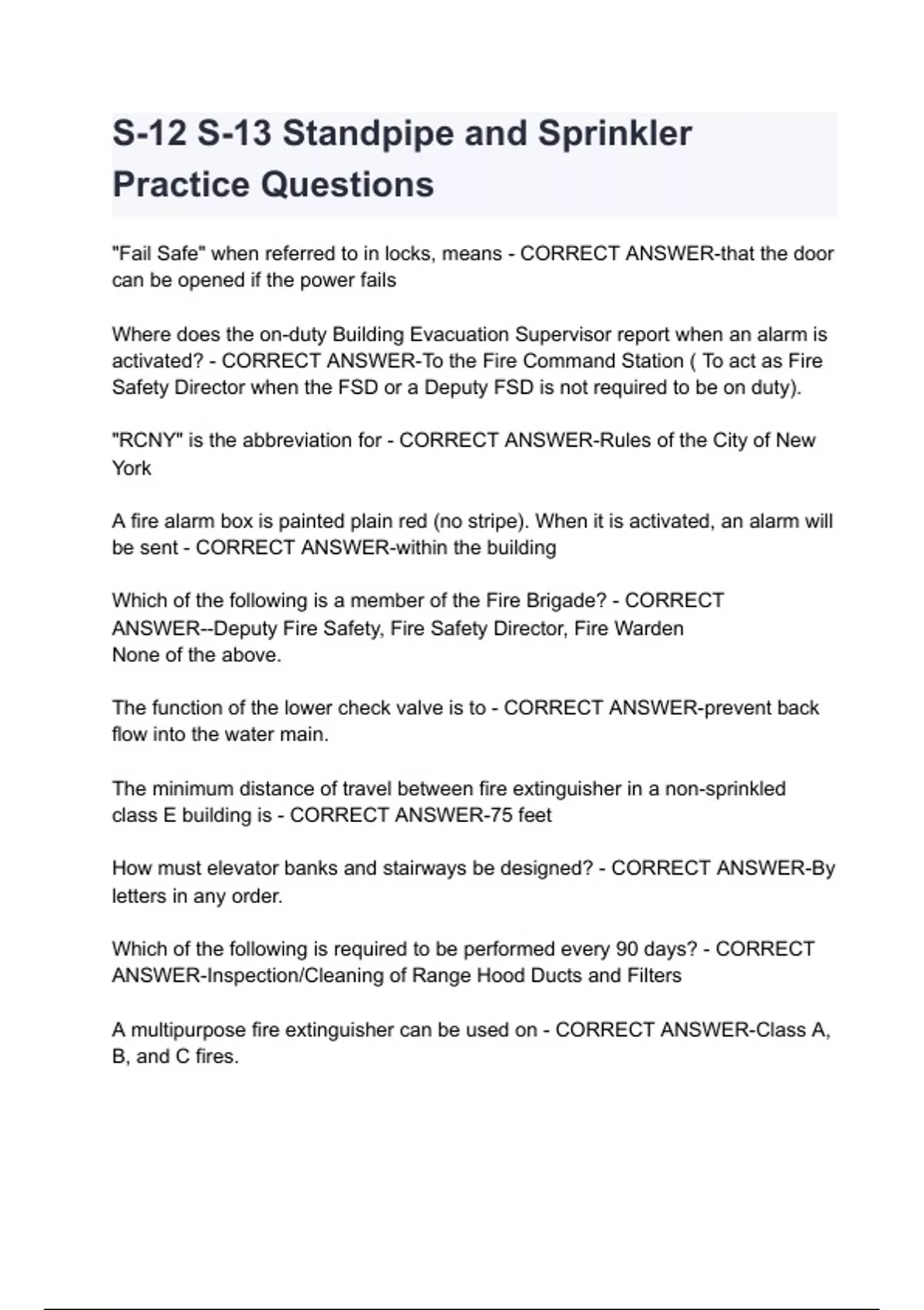 S-12 S-13 Standpipe and Sprinkler Practice Questions
