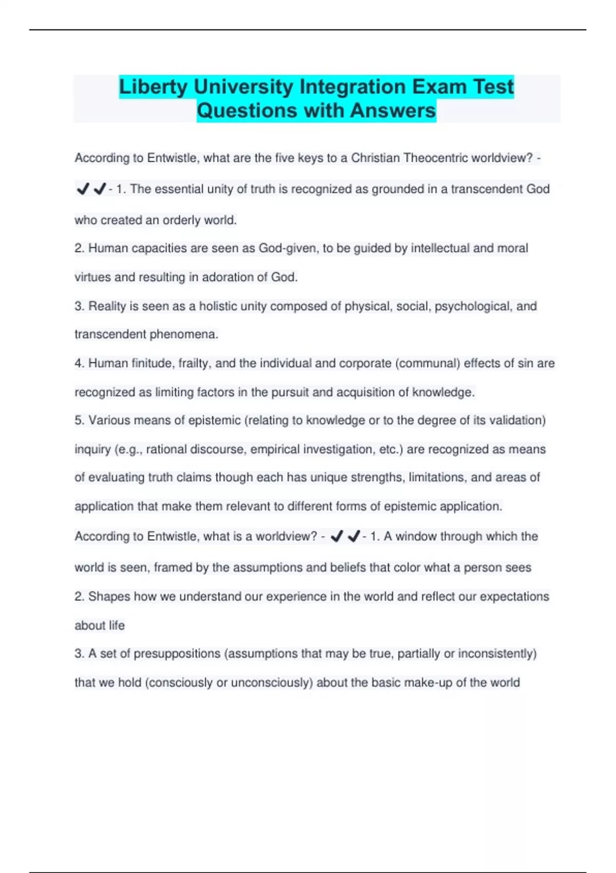 According to Entwistle, what is a worldview? - ✔️✔️- 1. A window through which the