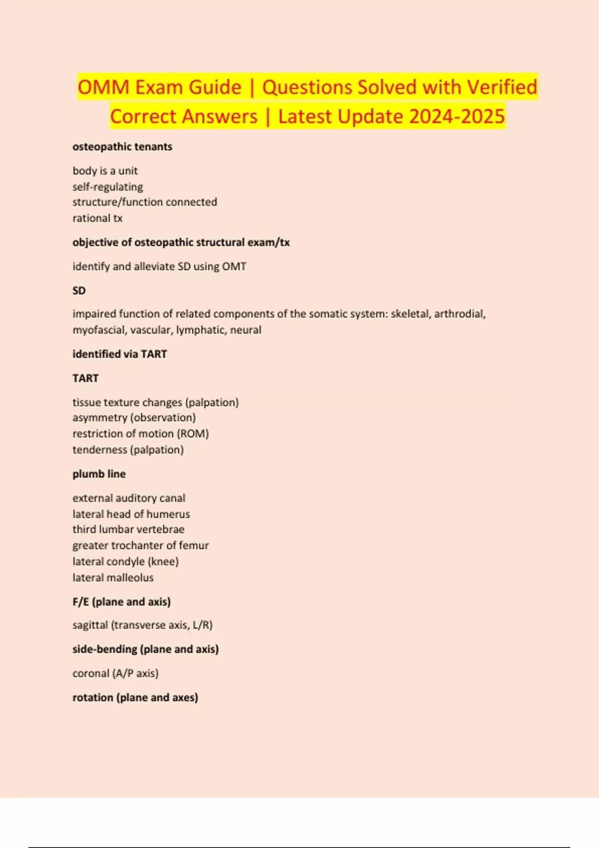 OMM Exam Guide | Questions Solved with Verified Correct Answers | Latest Update
