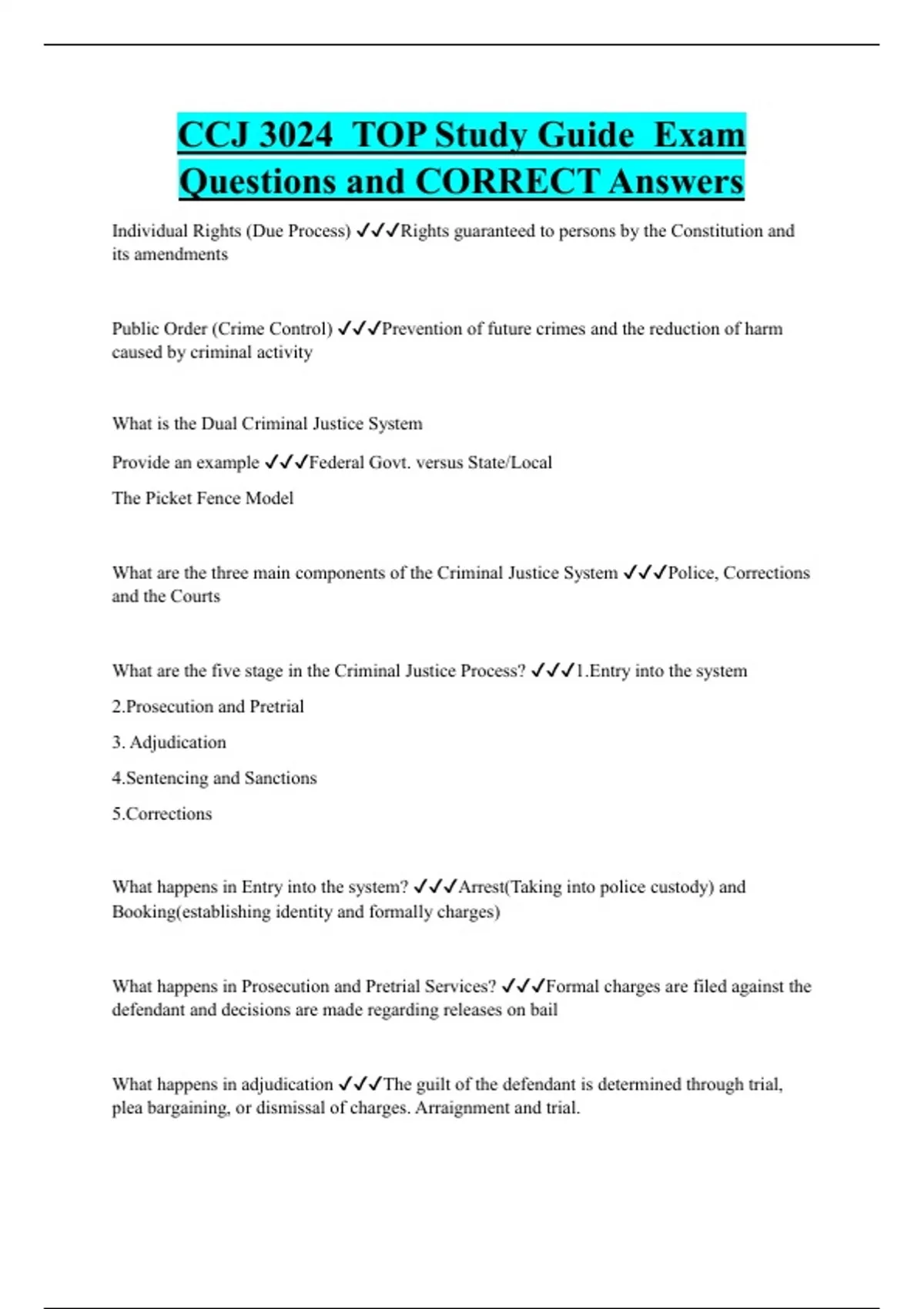 CCJ 3024 TOP Study Guide Exam Questions and CORRECT Answers
