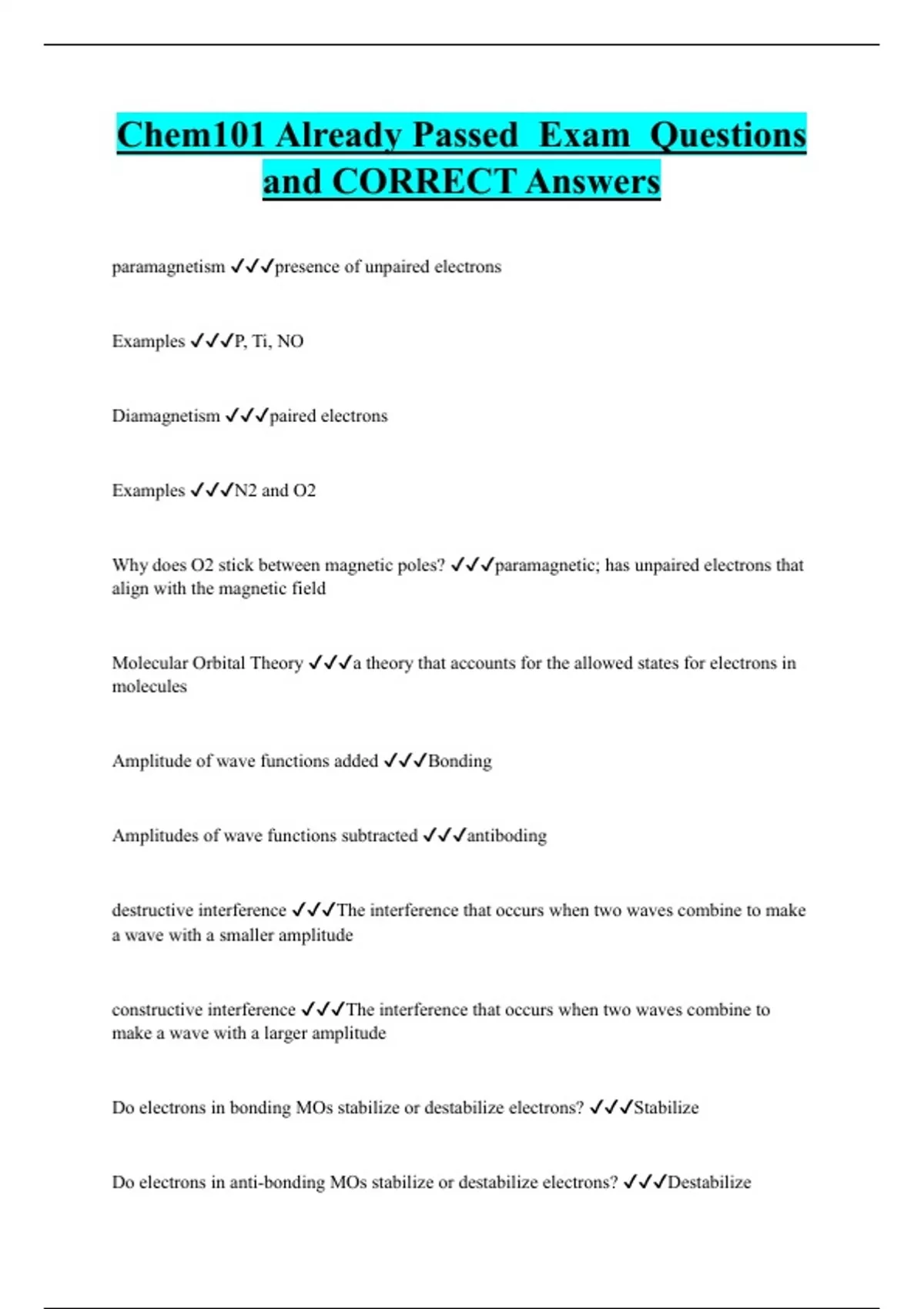 Chem101 Already Passed Exam Questions and CORRECT Answers