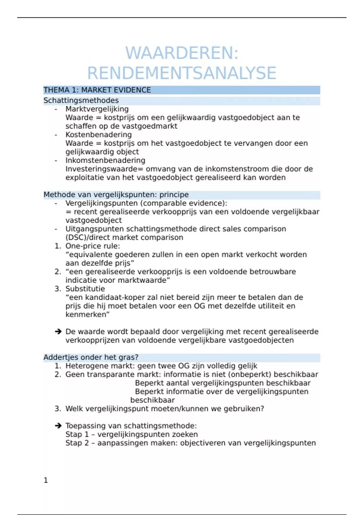 Collegedictaat van 29 pagina's voor het vak Waarderen rendementsanalyse aan de HoGent (samenvatting)